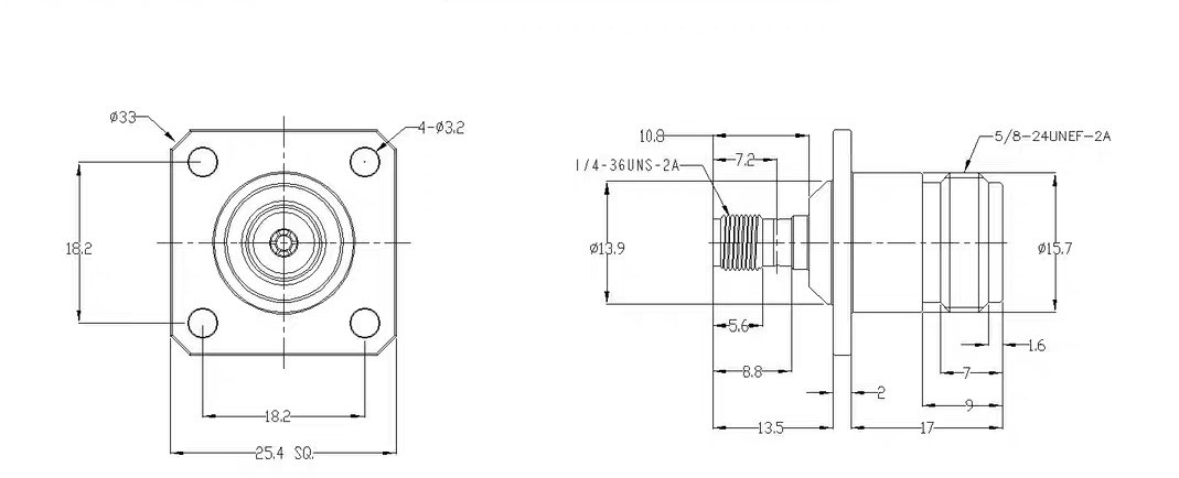 SMA转N头带法兰固定面板外螺内孔 N/SMA-KFK射频同轴连接器转接头