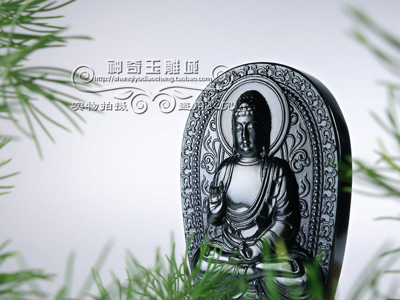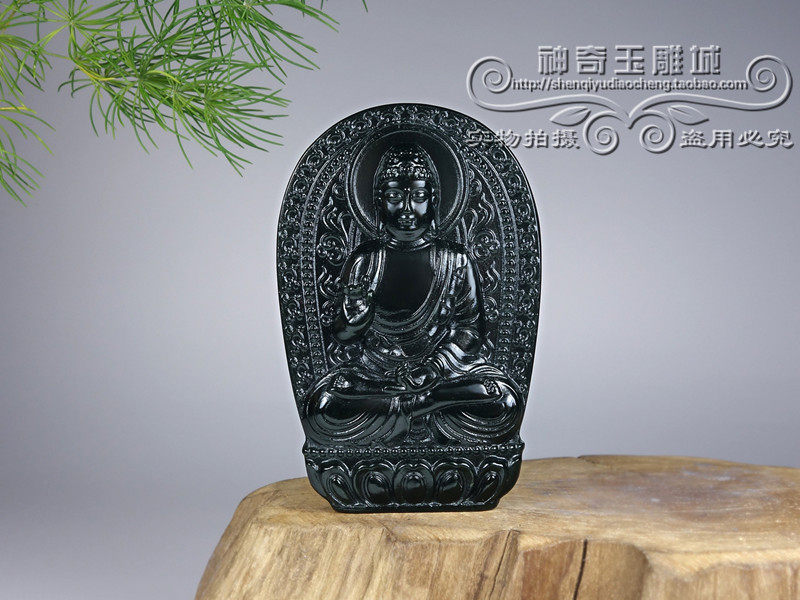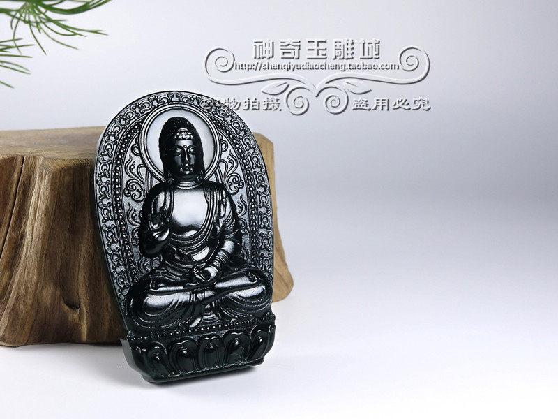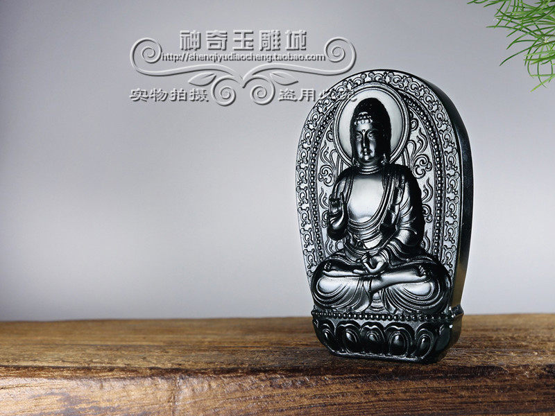 新疆和田玉墨玉本命佛吊坠男女生肖属猪狗守护神阿弥陀佛佛像