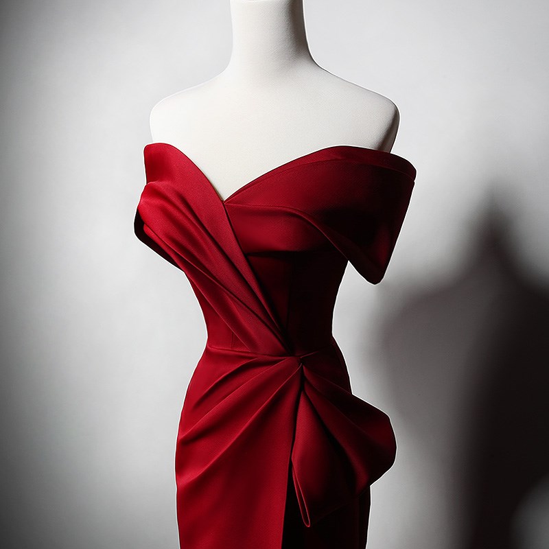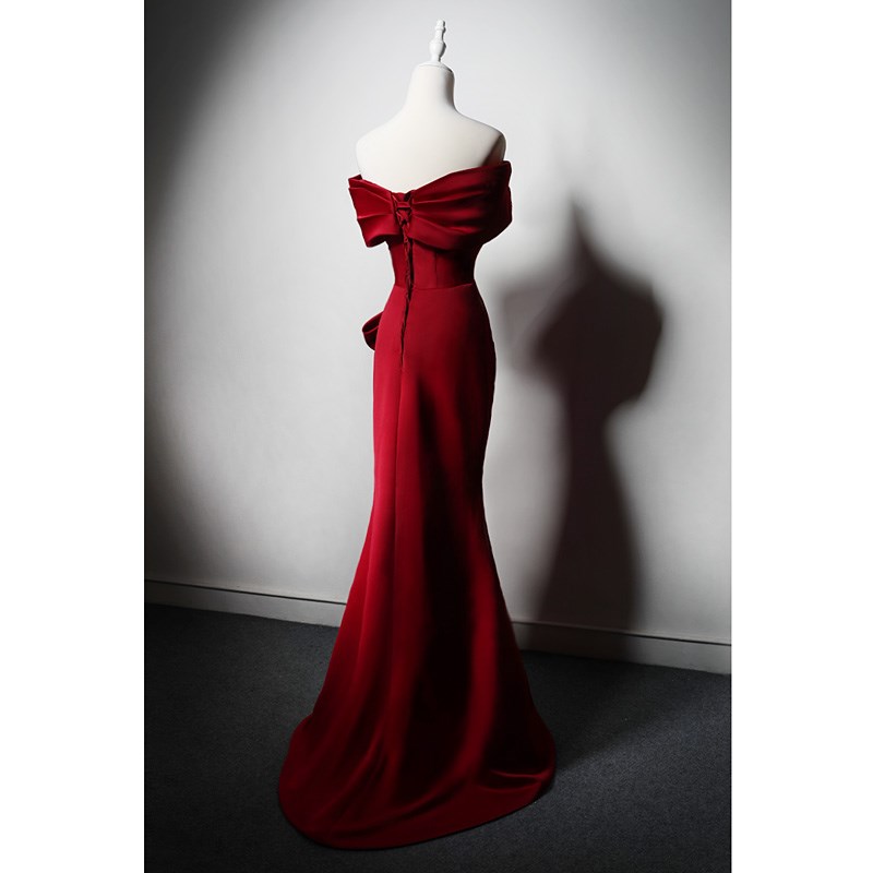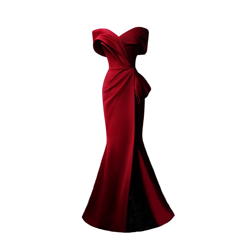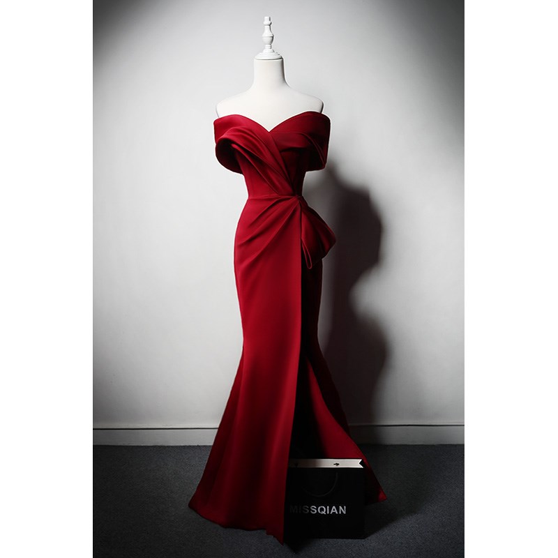 MISSQIAN 质感酒红修身性感鱼尾晚礼服新娘敬酒服主持表演长裙女
