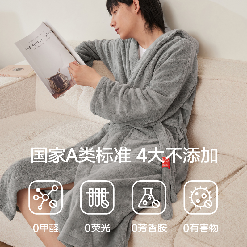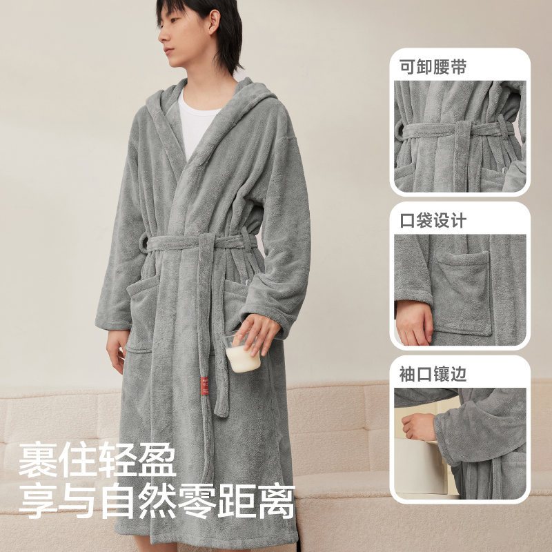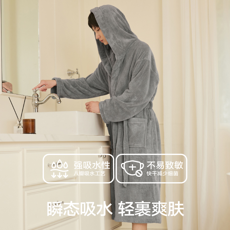 三利浴袍男吸水速干冬成人浴巾酒店浴衣情侣款可穿睡袍长款男款厚