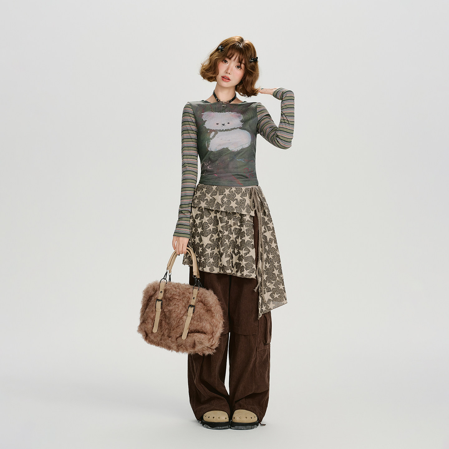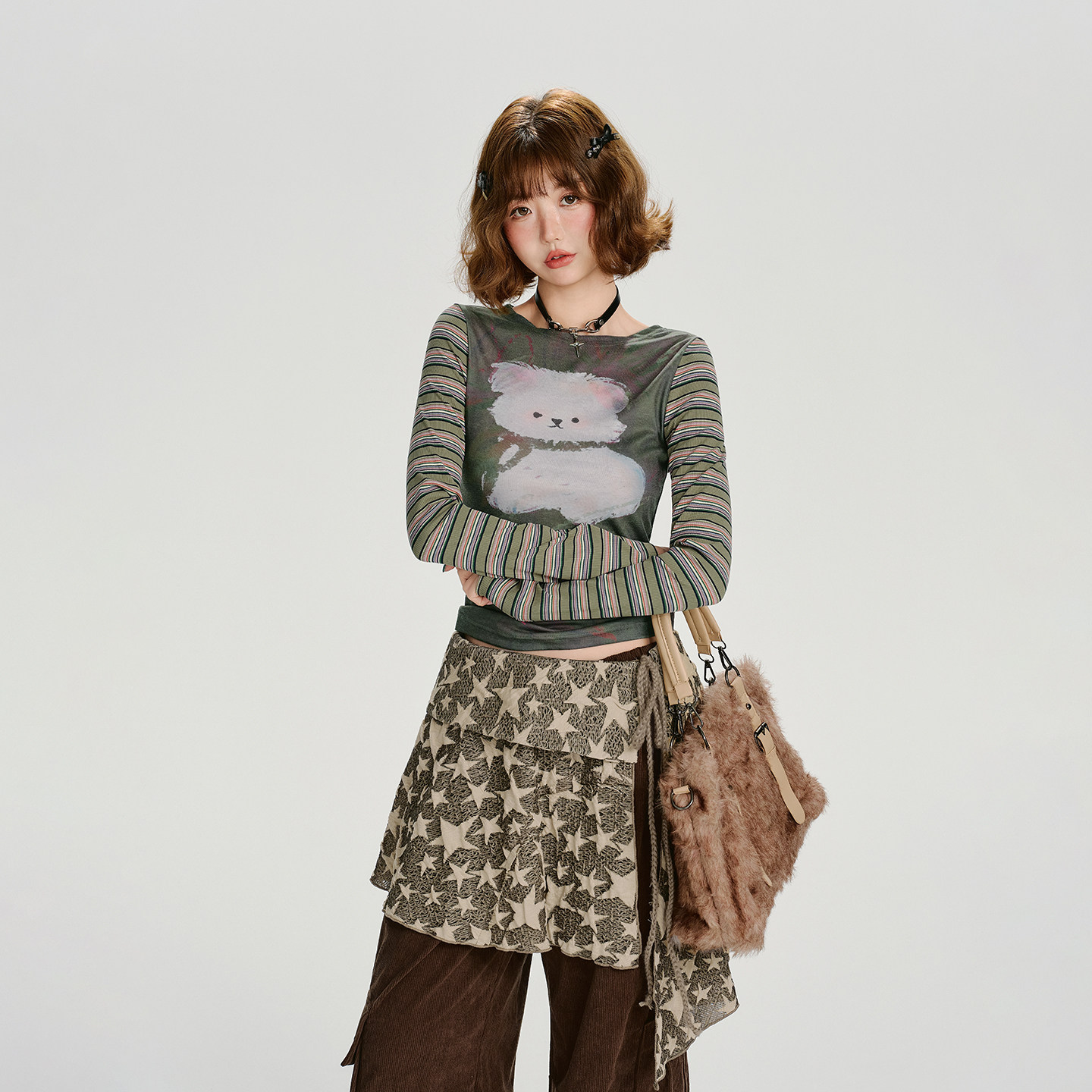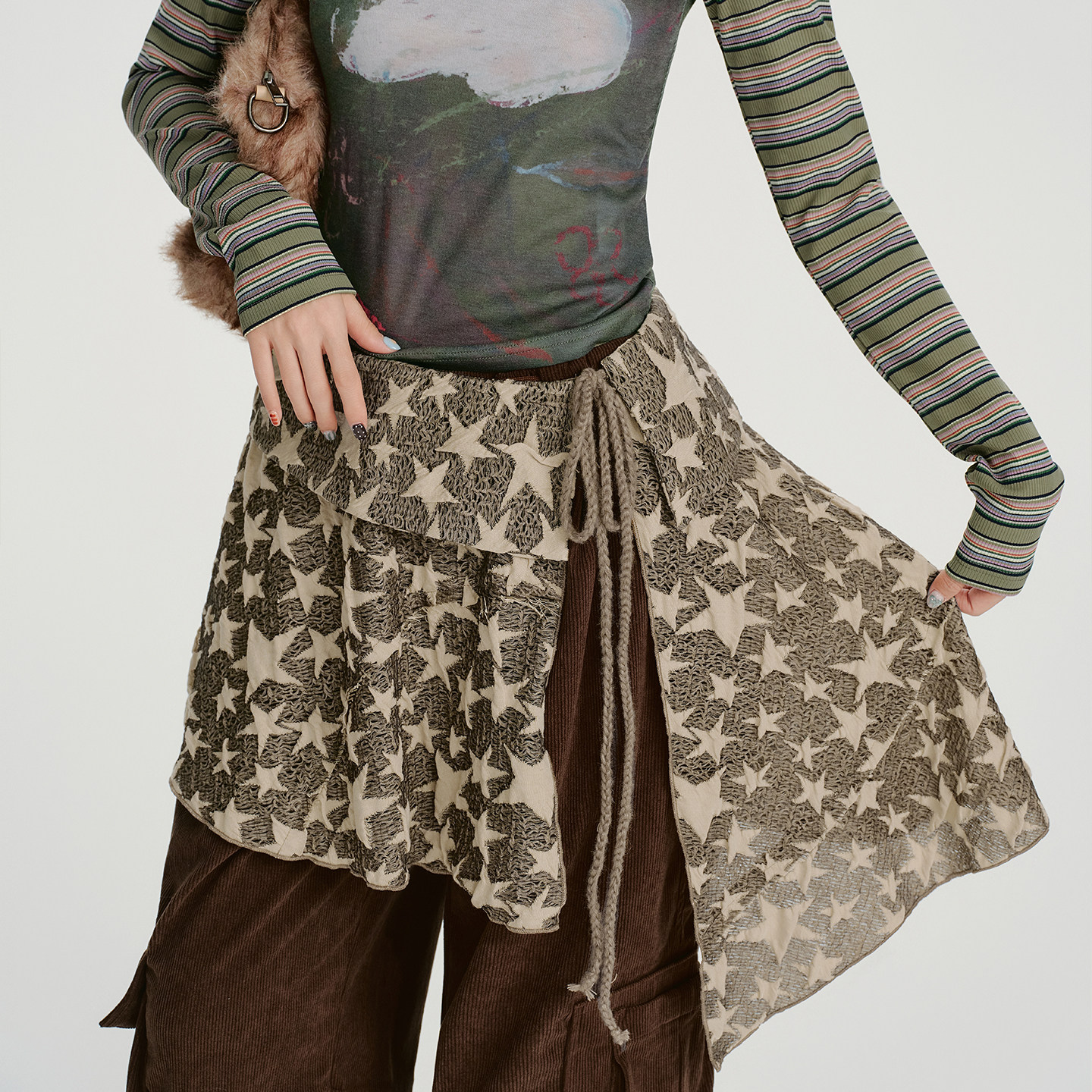 Girlyhalo美式复古星星蕾丝半身裙女一片式百搭叠穿屁帘