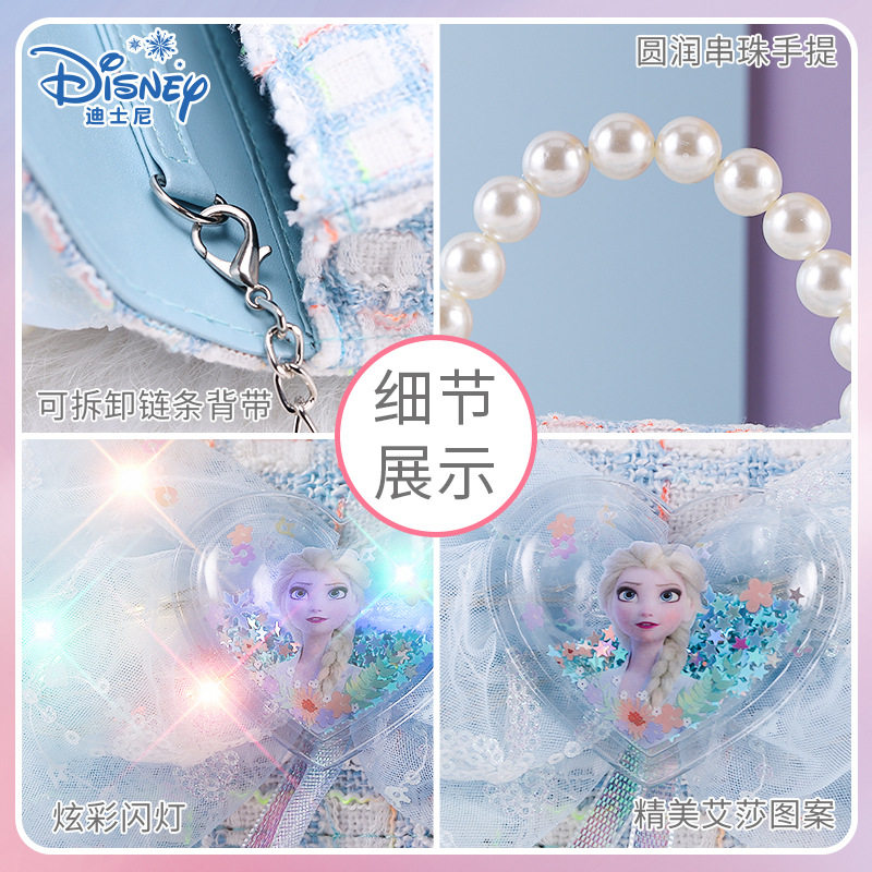 迪士尼艾莎儿童斜挎包小香风小女生爱莎公主闪灯包女孩手提包网红