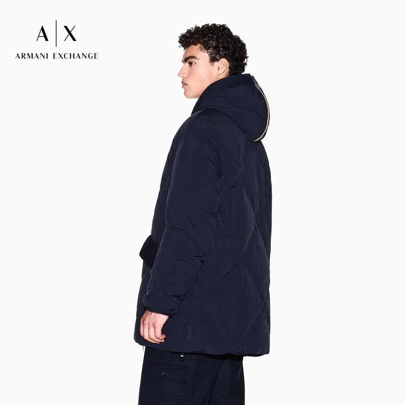 ARMANI EXCHANGE/阿玛尼冬季新款男连帽绗缝休闲中长夹克棉服外套