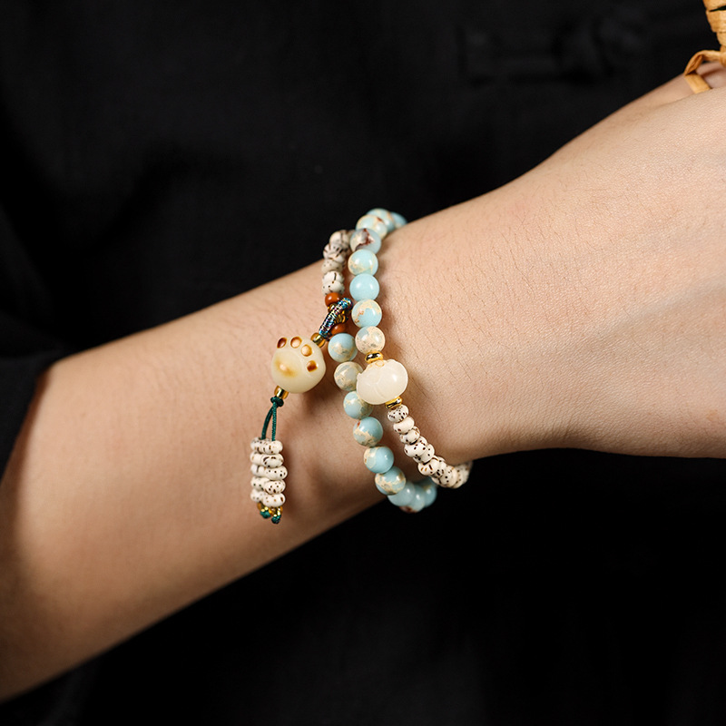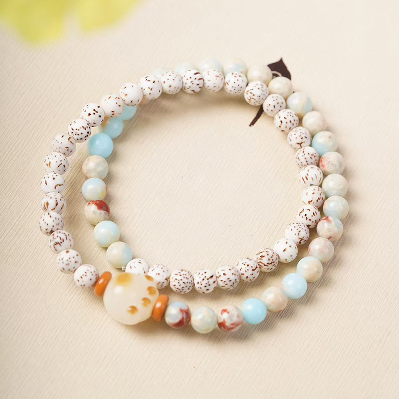 正品国风新中式清新素雅双圈星月菩提拼寿山石猫爪手链国潮手串