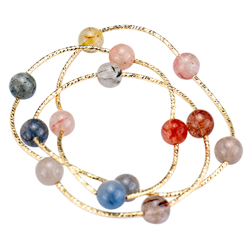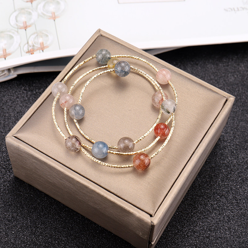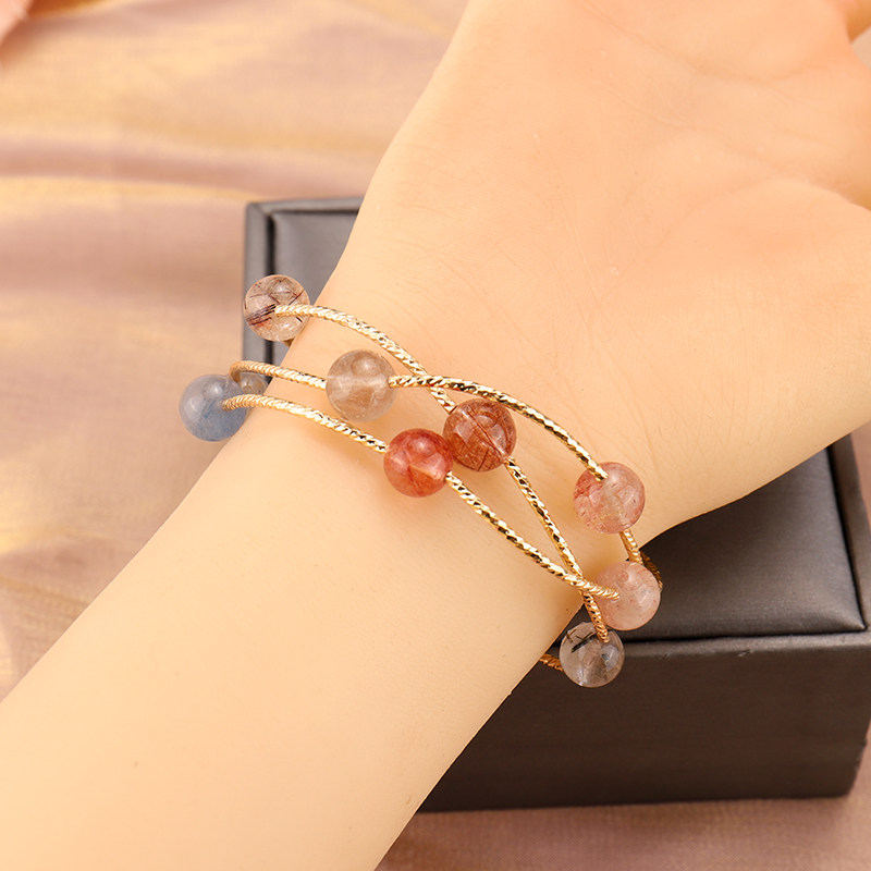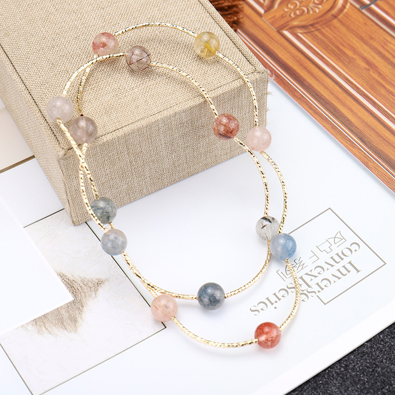 2020新款多宝石天然水晶手链多层草莓晶月光石招桃花手串小众设计