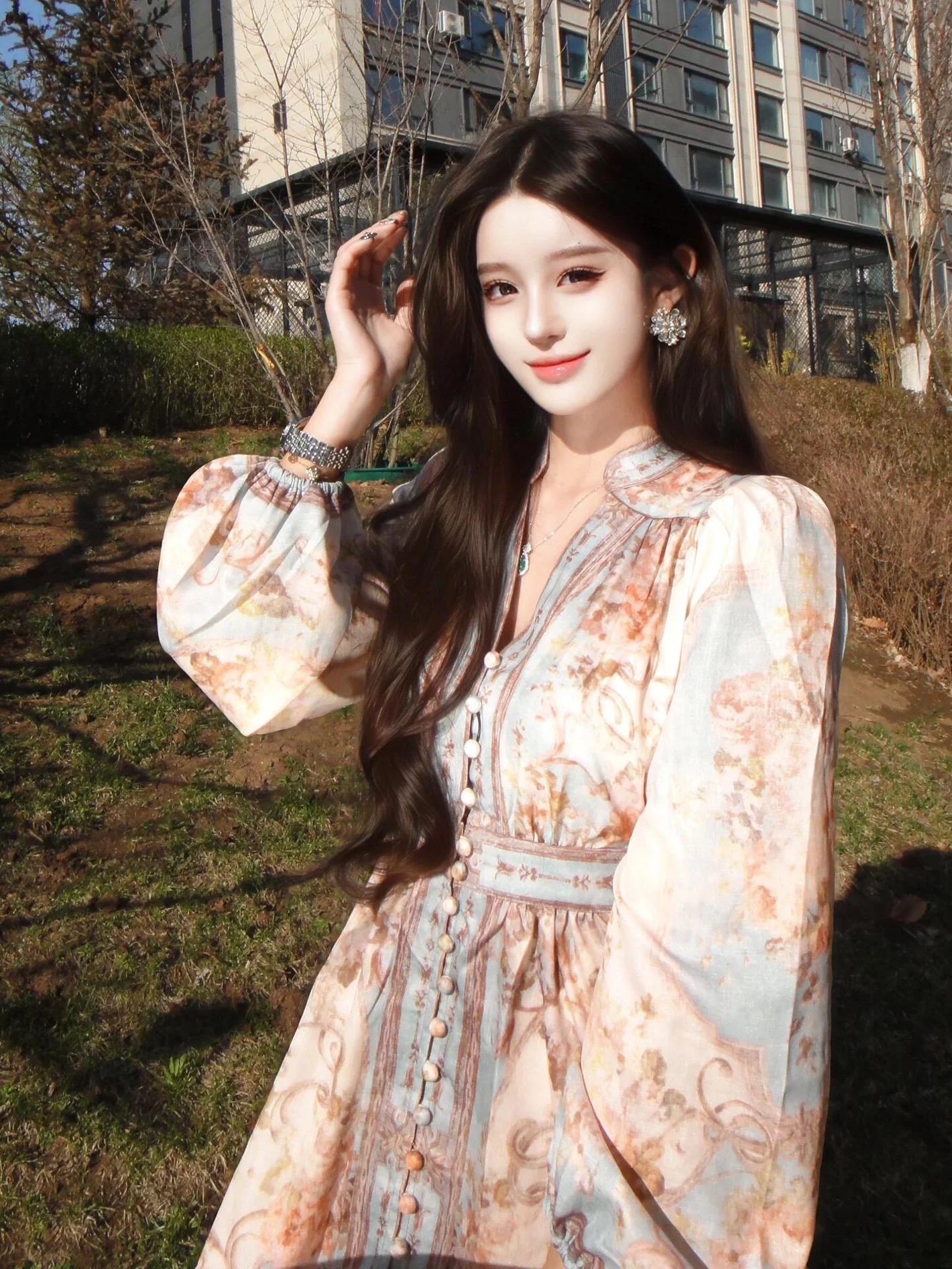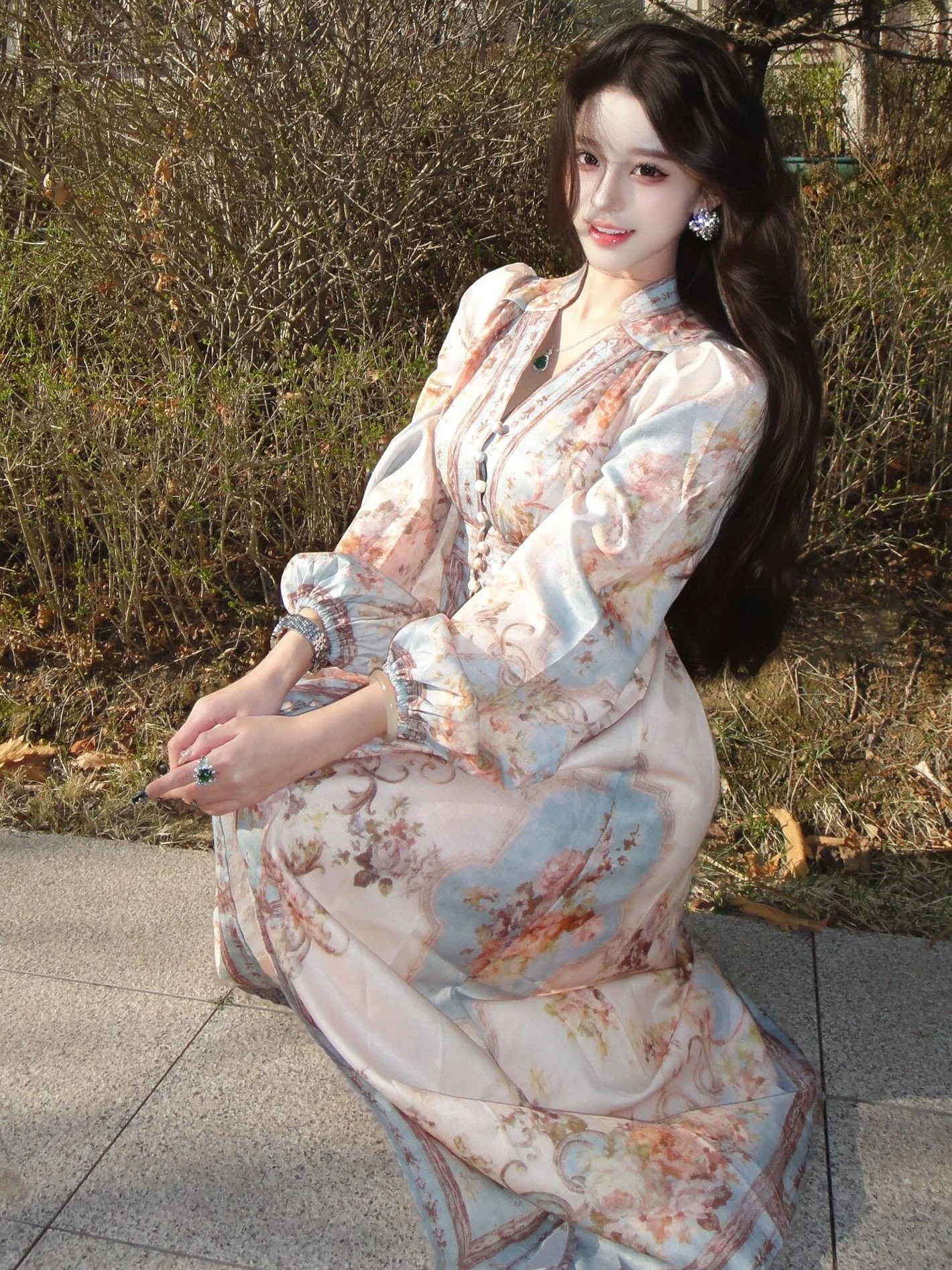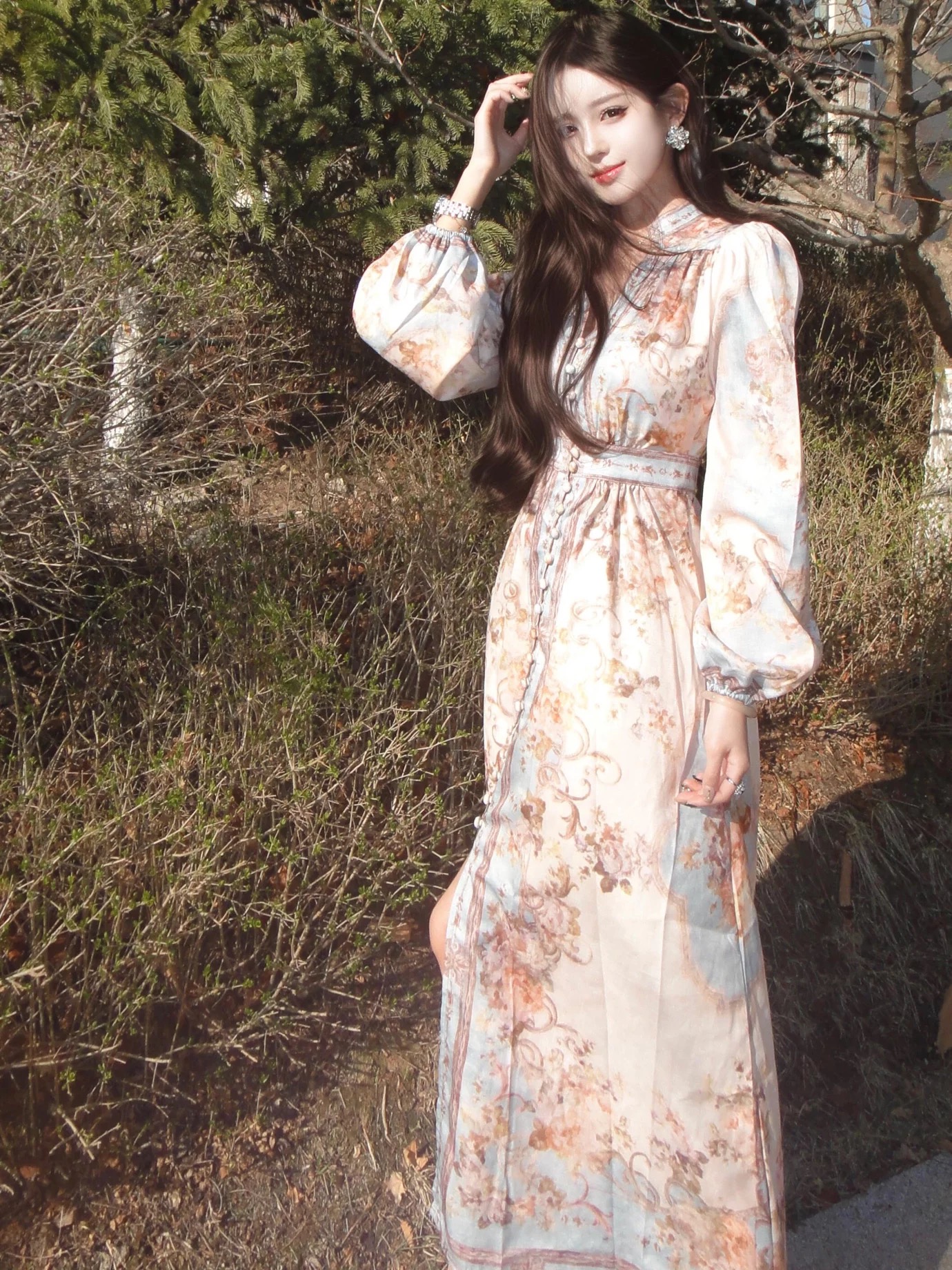 高级小众长袖连衣裙春季轻奢名媛重工精致设计感多巴胺绝美礼服裙