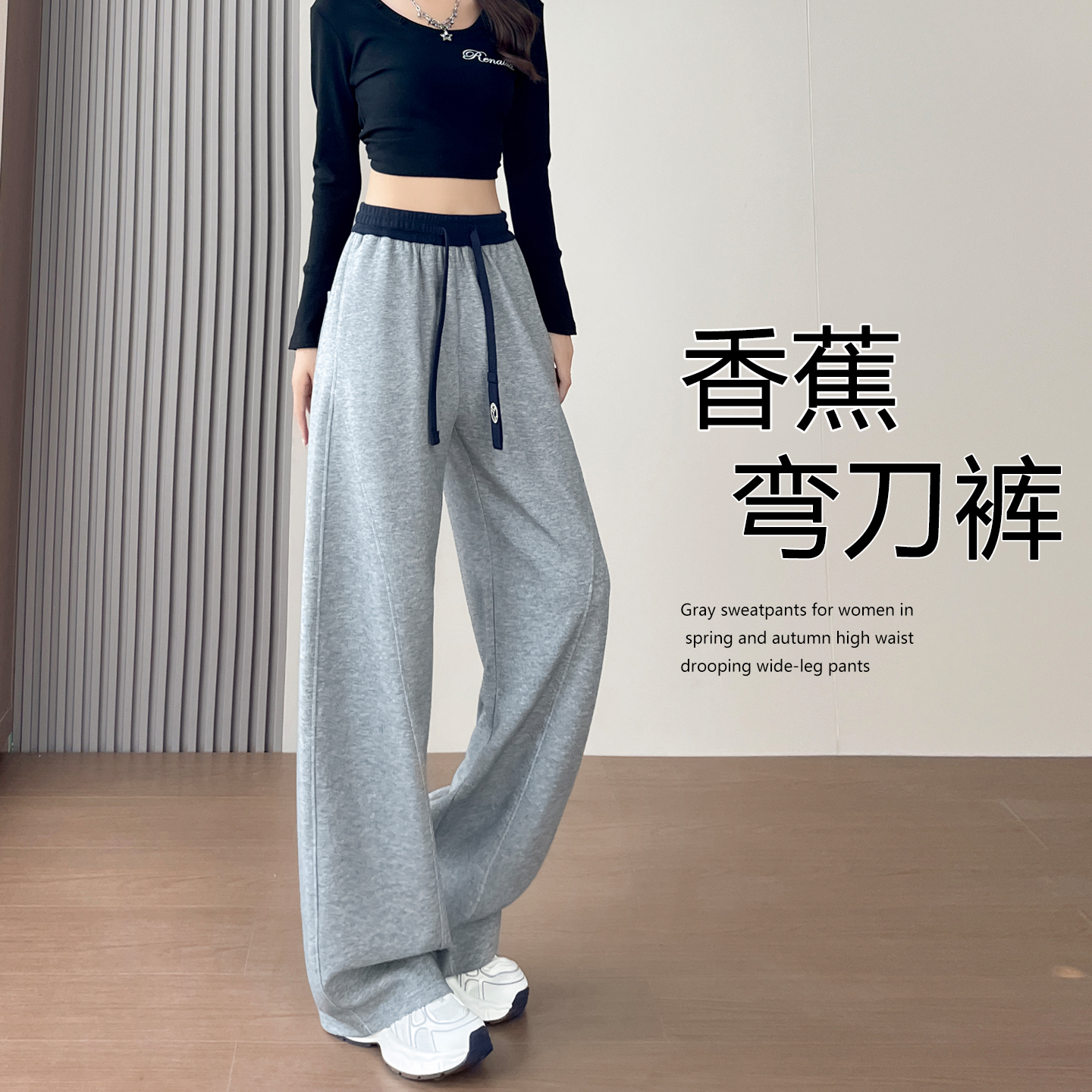 弯刀阔腿裤女春秋香蕉运动卫裤子