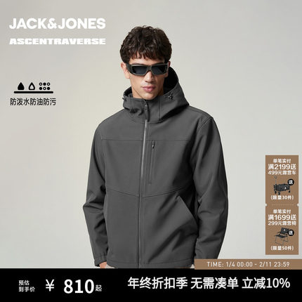 【AT系列】杰克琼斯秋冬男装棉服新纯色抽绳连帽宽松休闲保暖外套
