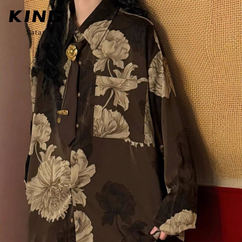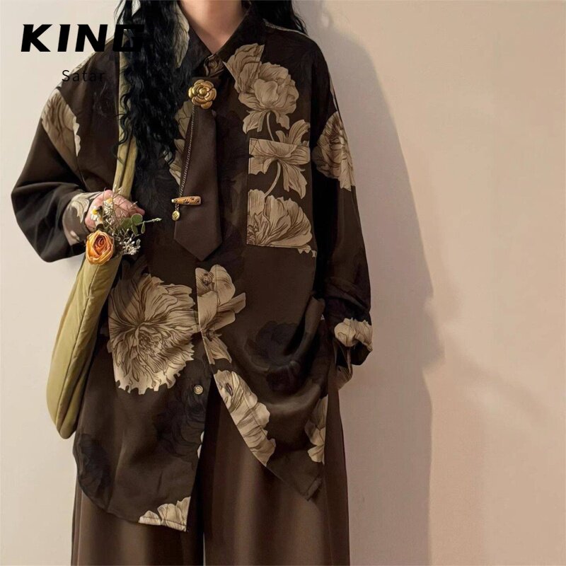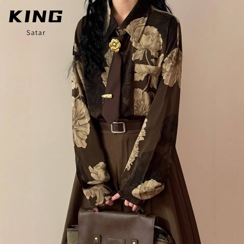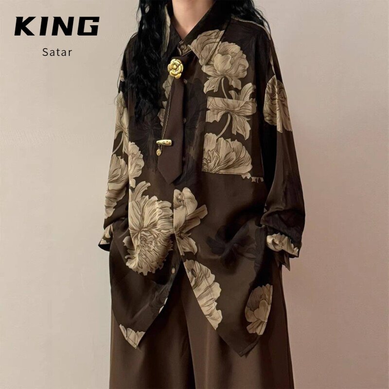 三件装/日系复古花卉印花长袖衬衫男女生春季宽松休闲艺术感套装