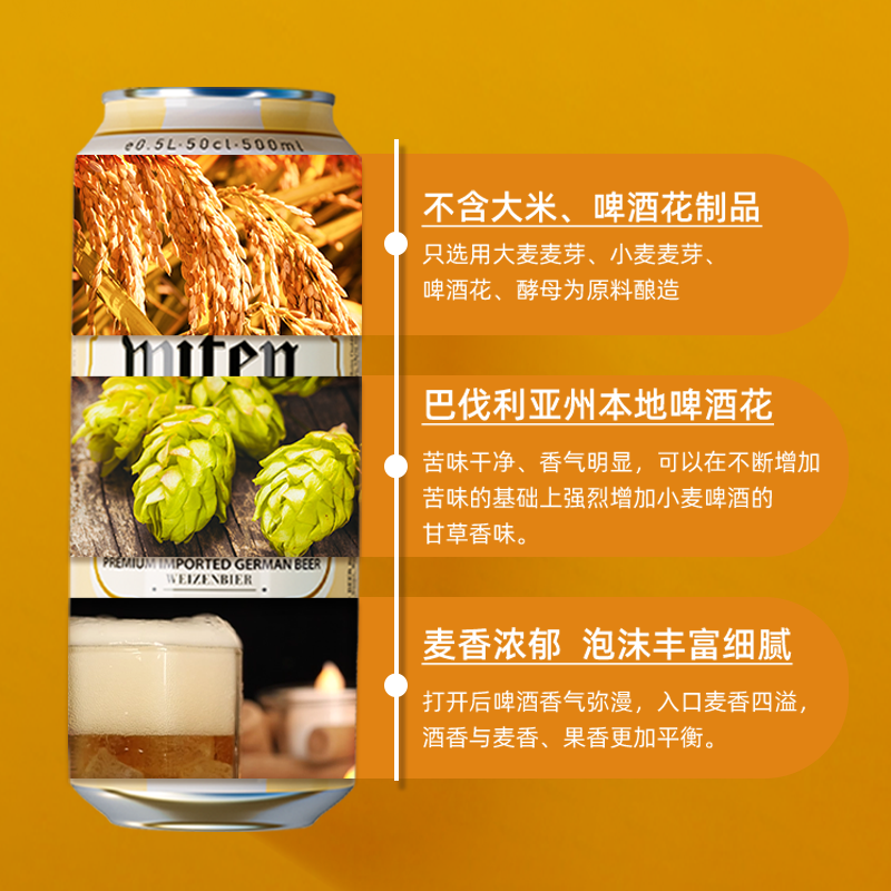 德国原装进口万格纳小麦白啤酒500ml*24听罐装啤酒整箱批发聚会