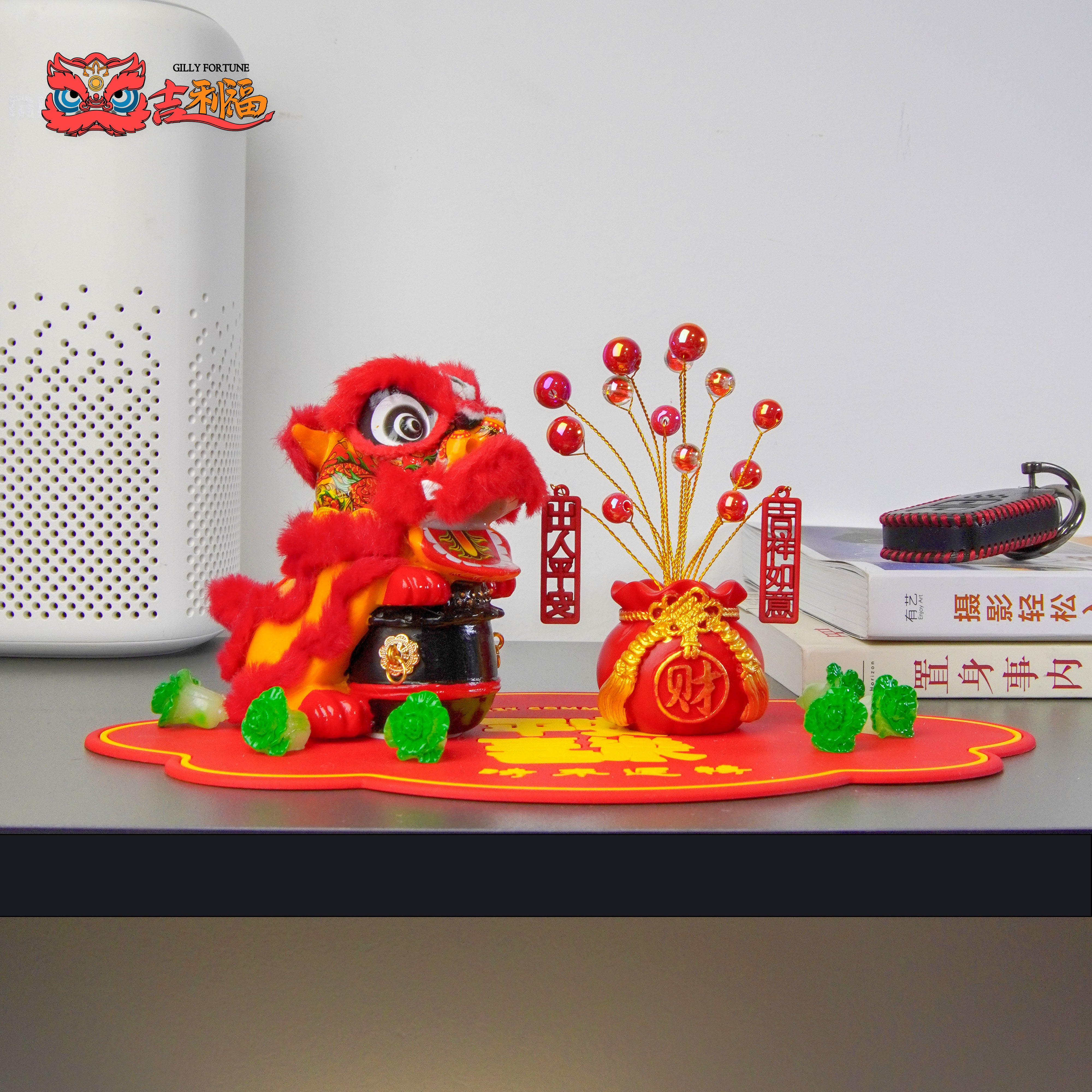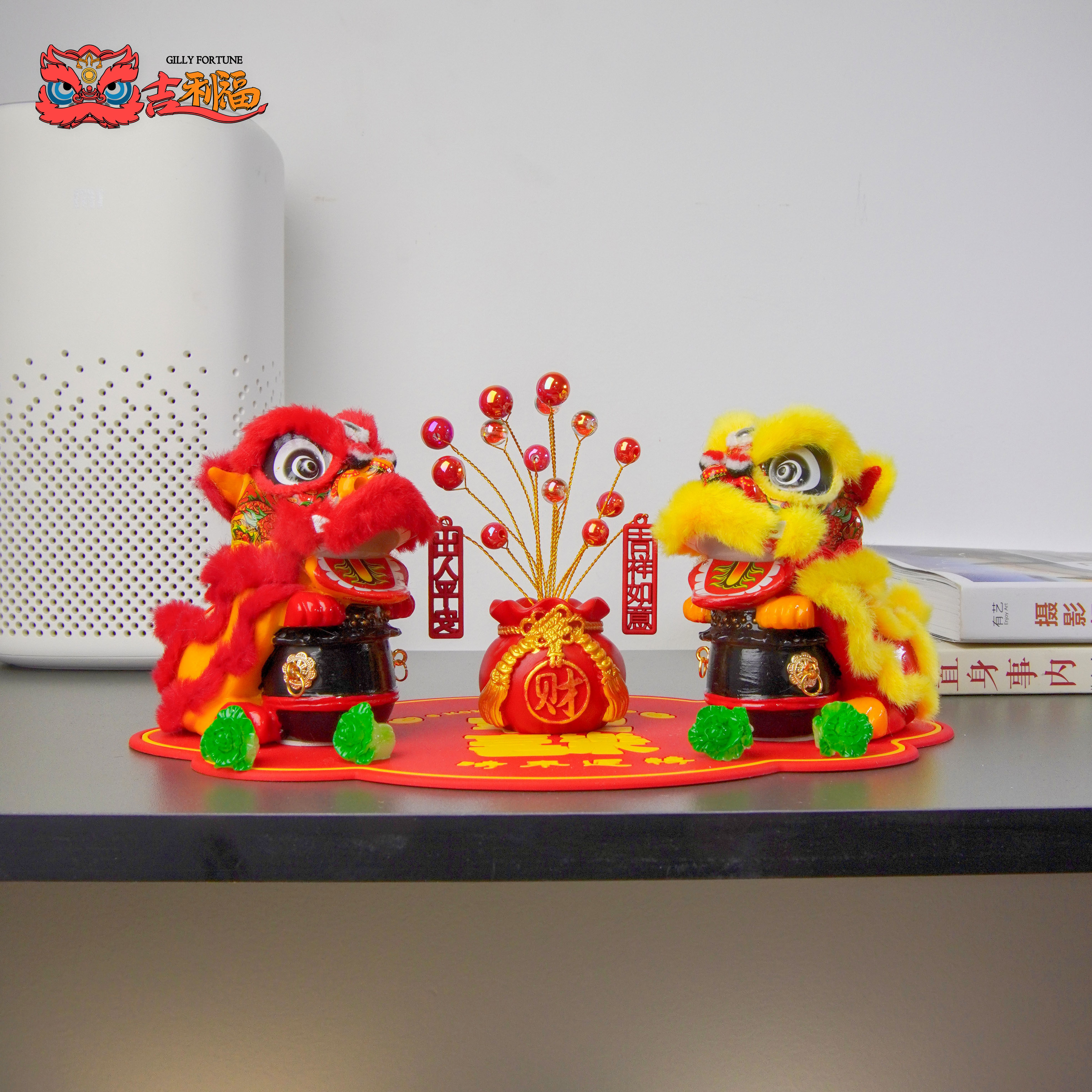 国潮醒狮狮子舞狮汽车家居办公收银台小摆件装饰保平安招财摆件