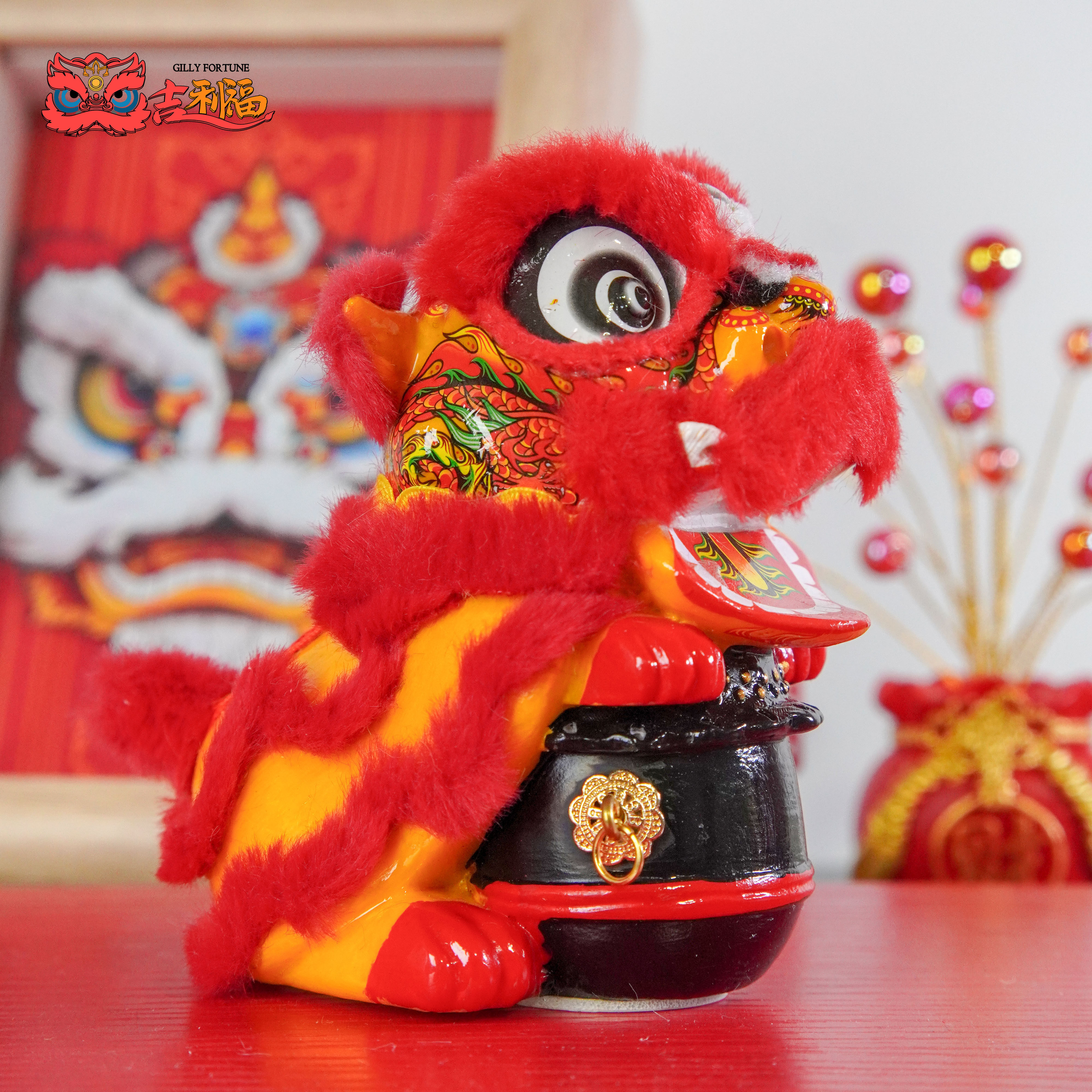 国潮醒狮狮子舞狮喜庆祝福摆件