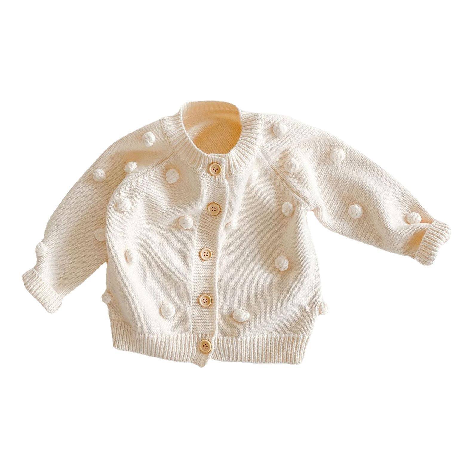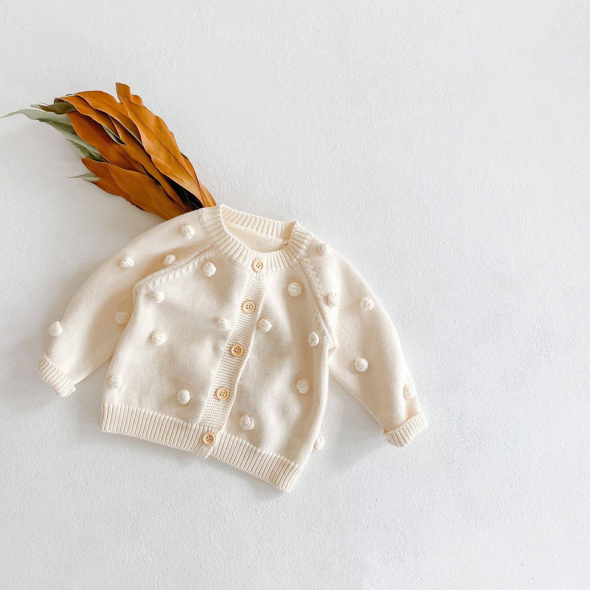 春秋季百搭男女宝宝儿童手工球球针织外套纯棉长袖新生儿新年童装