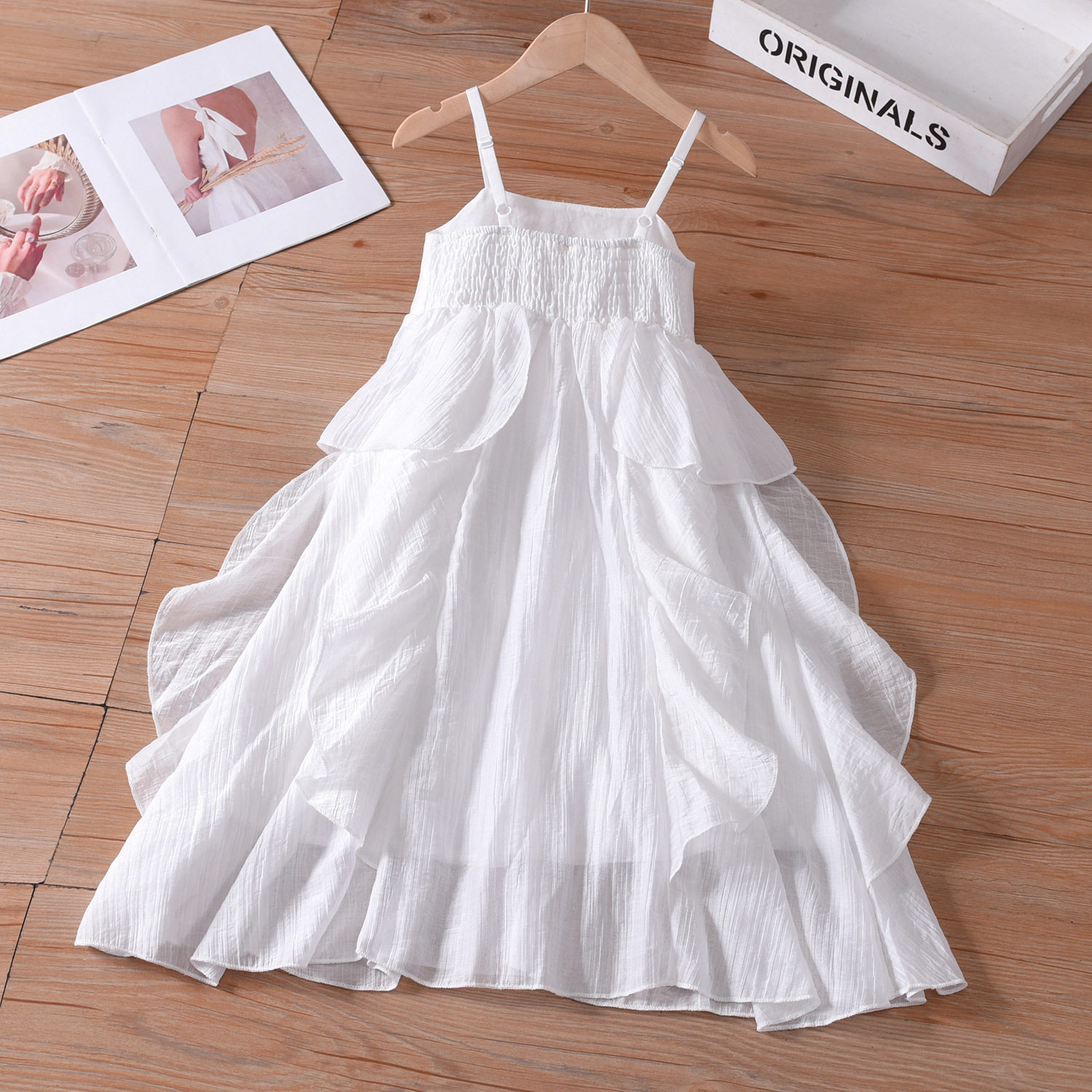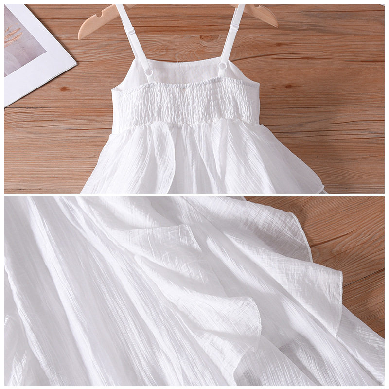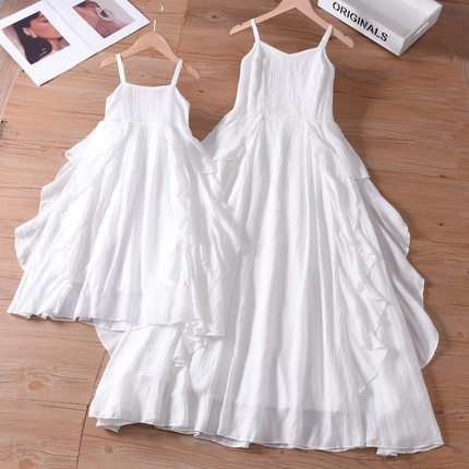 亲子装夏装母女白色连衣裙夏季收腰海边女童装超仙荷叶边吊带长裙