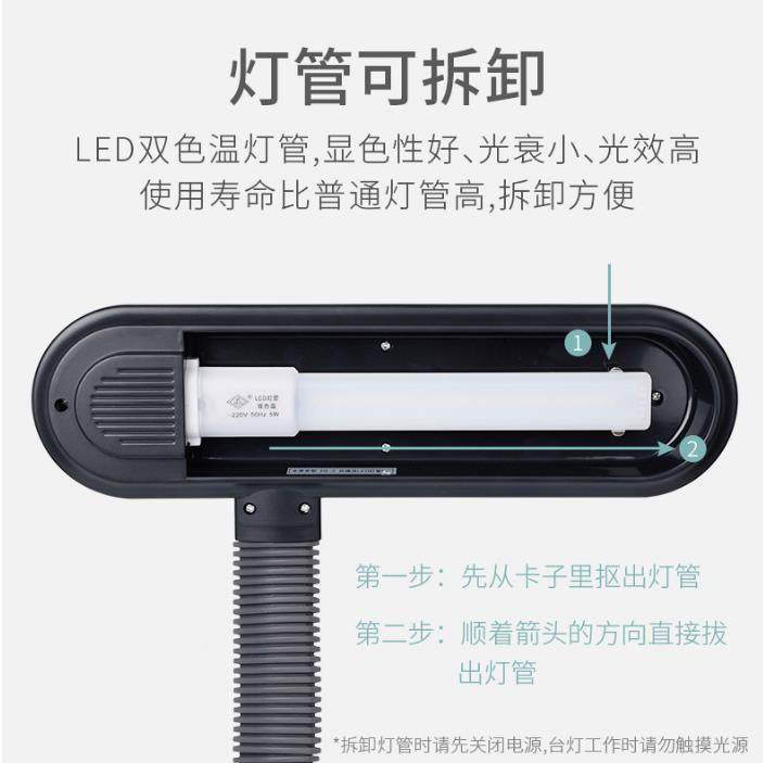 良亮可换三色LED灯管式护眼书桌学生卧室床头家用办公插电式台灯