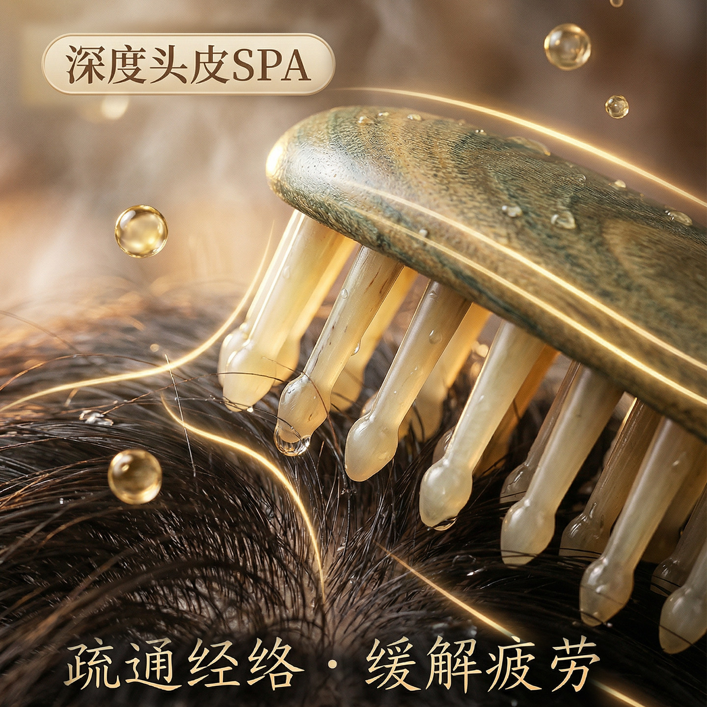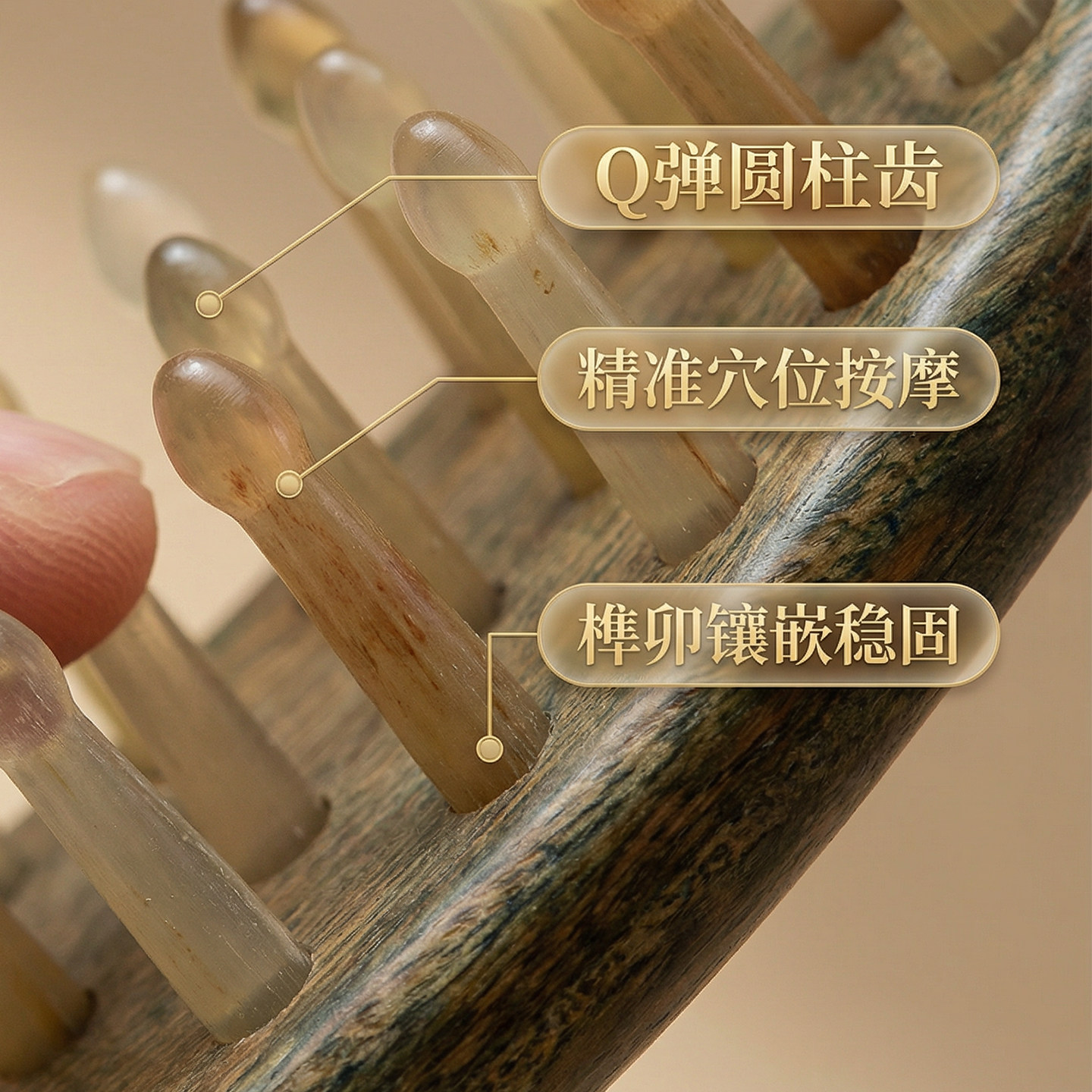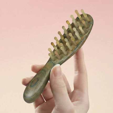 天然绿檀木头皮按摩梳羊角木梳女士专用头部经络按摩梳子家用