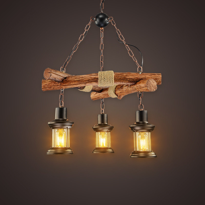 复古工业风吊灯餐厅三头实木酒吧台中式禅意创意个性民宿茶室灯具