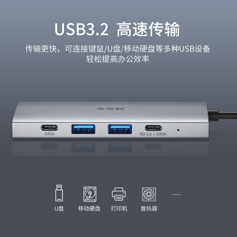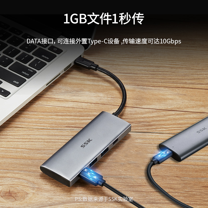 SSK/飚王typec拓展坞10gbps高速hdmi投屏pd3.0快充usb3gen2扩展坞