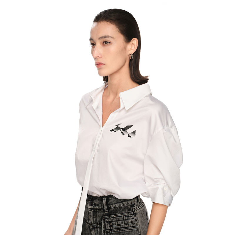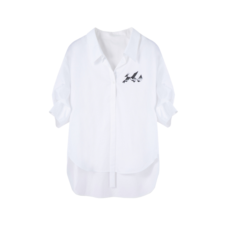 H·GENTEEL荷高新款夏装女印花钉珠凸显质感雅致云白色衬衫