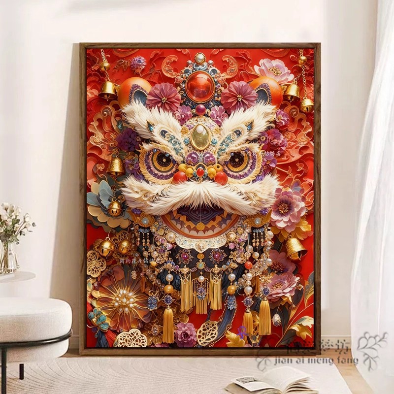 喜狮纳福十字绣2026新款高级感客厅卧室国风寓意好刺绣手工钻石画
