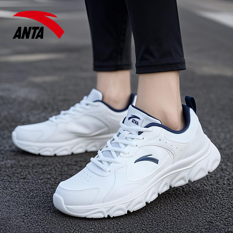 安踏男鞋跑步鞋2025新款皮面软底小白鞋官方旗舰正品休闲运动鞋子
