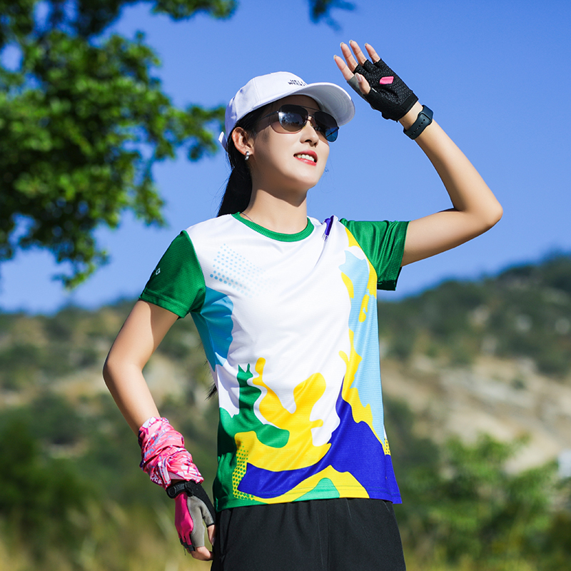 夏季户外速干t恤女短袖运动速干衣迷彩T恤长袖登山透气吸湿排汗衫