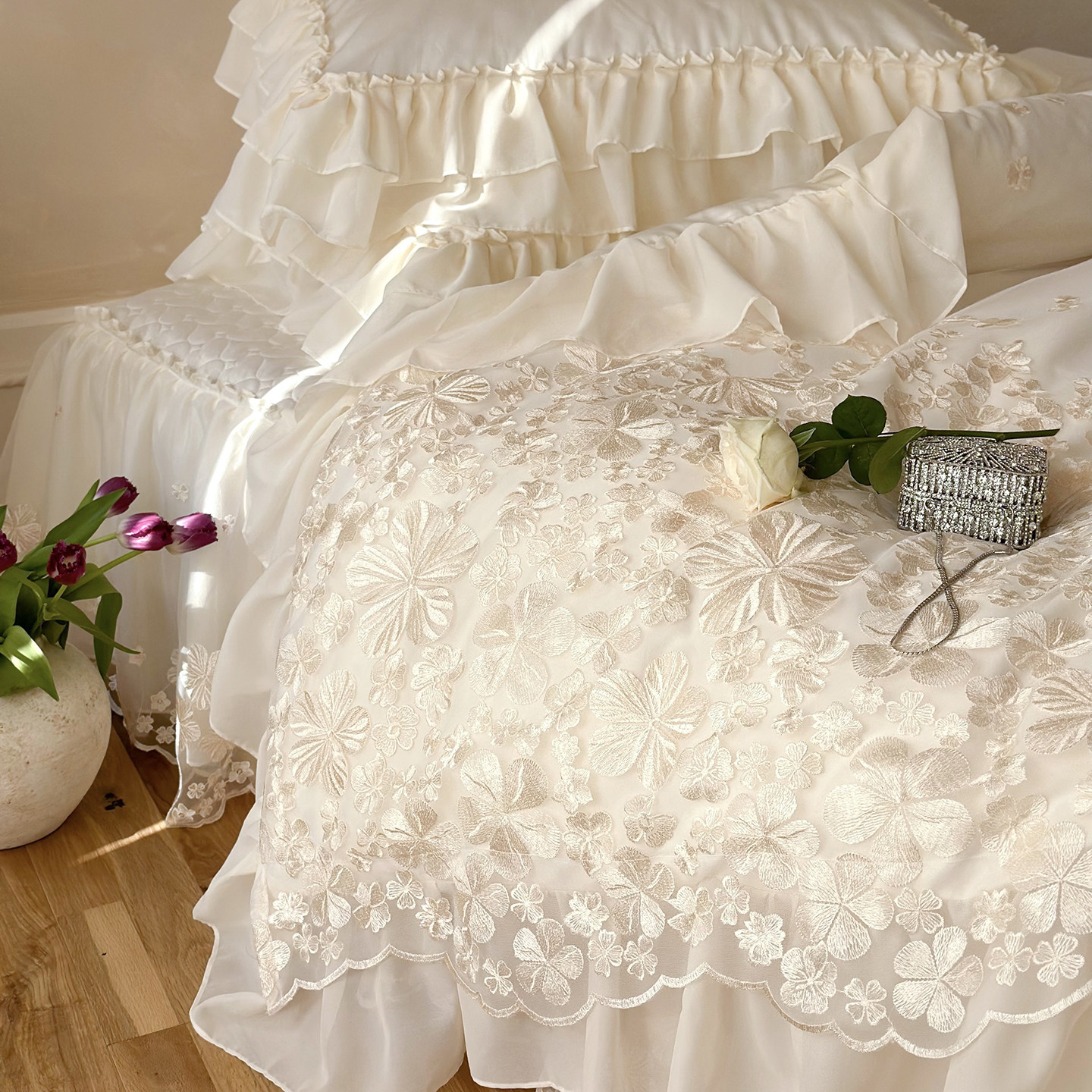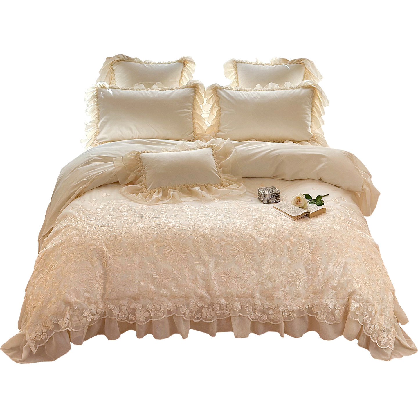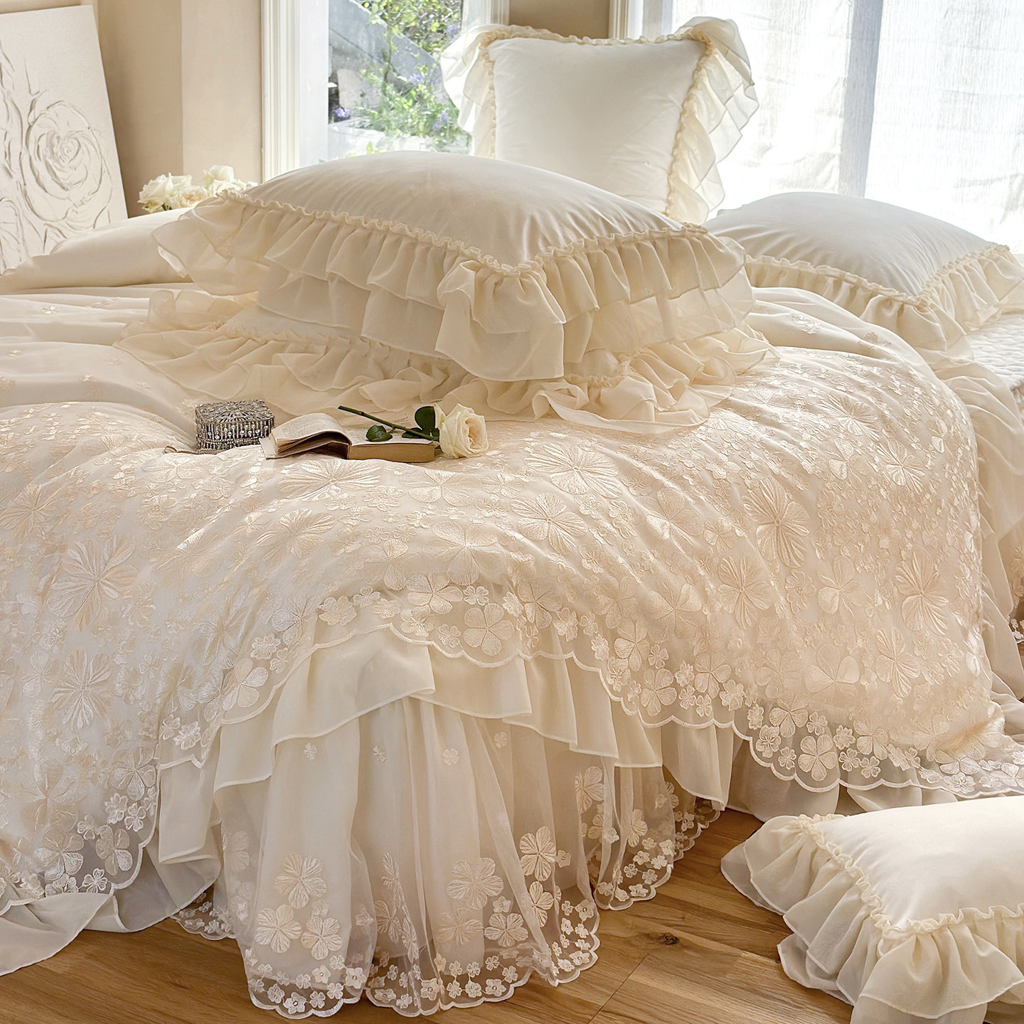 法式仙气牛奶绒四件套公主风蕾丝边加厚珊瑚绒被套加绒保暖床单盖
