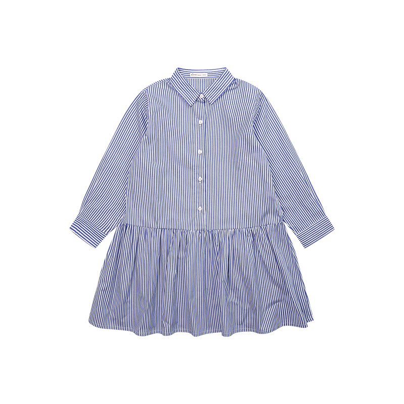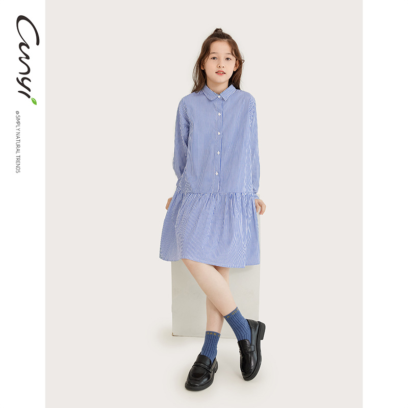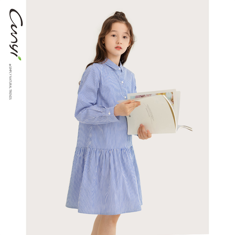 纯一良品童装女童连衣裙春秋新品中大童条纹衬衫裙休闲百搭