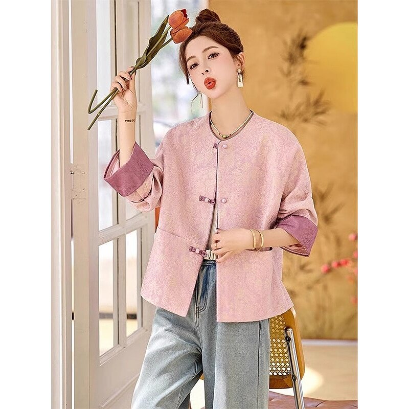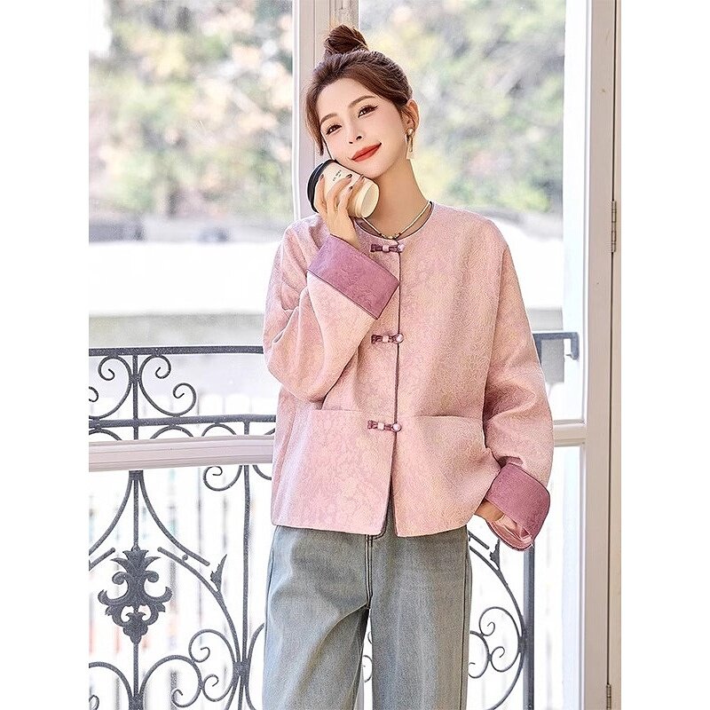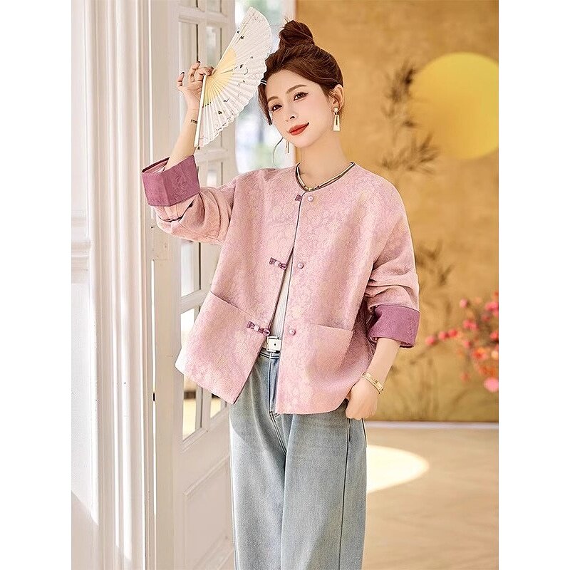 新中式国风提花短外套女2025春装新款高级感气质唐装轻奢圆领上衣