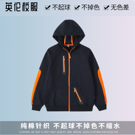 英伦学院风男女童春秋 中小学生藏青橘红运动服套装校服班服