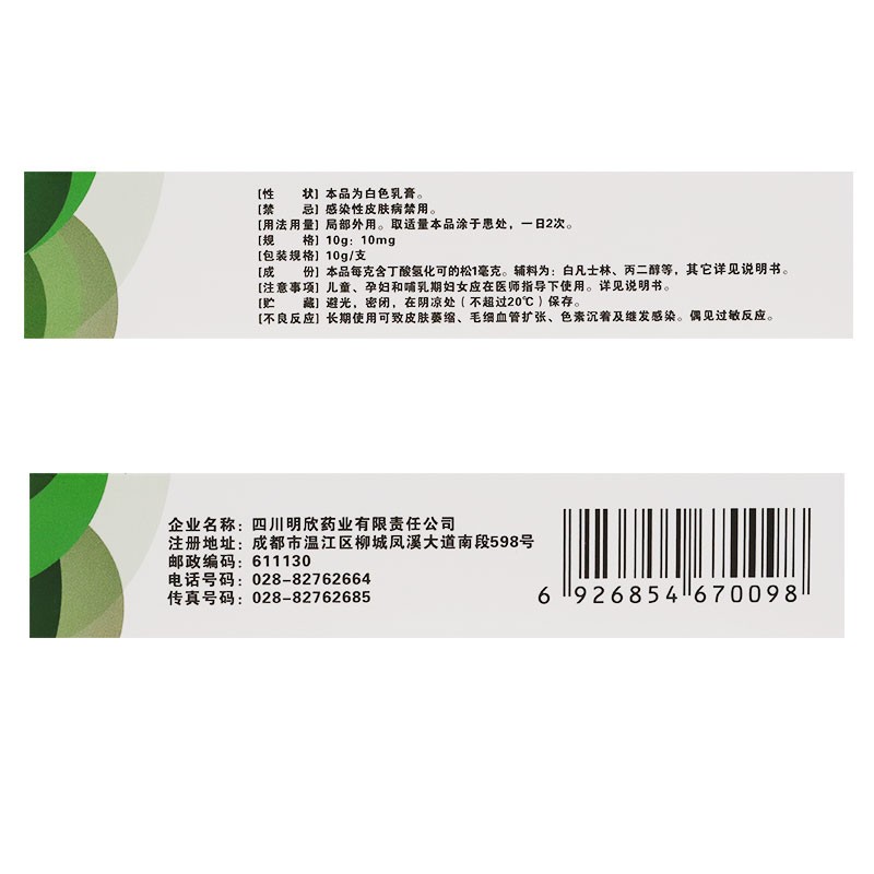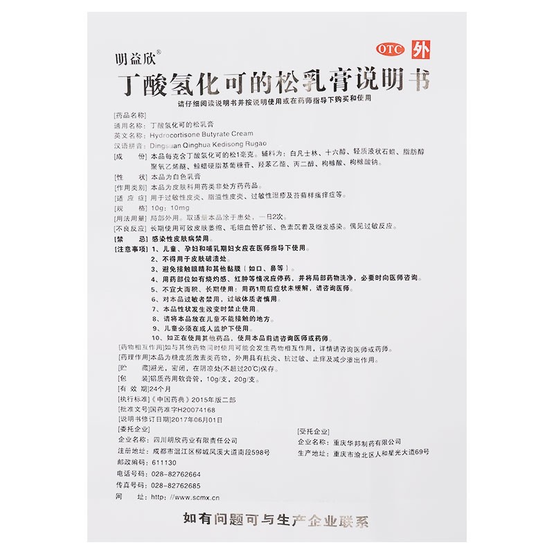 明益欣丁酸氢化可的松乳膏10g过敏性脂溢性皮炎湿疹正品瘙痒症