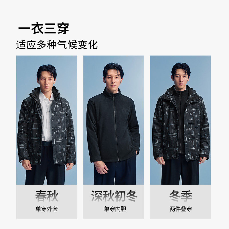 MobiGardenUrban牧高笛户外男三合一防水防风冲锋衣印花登山服