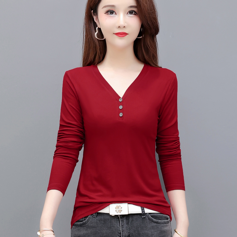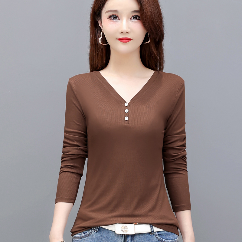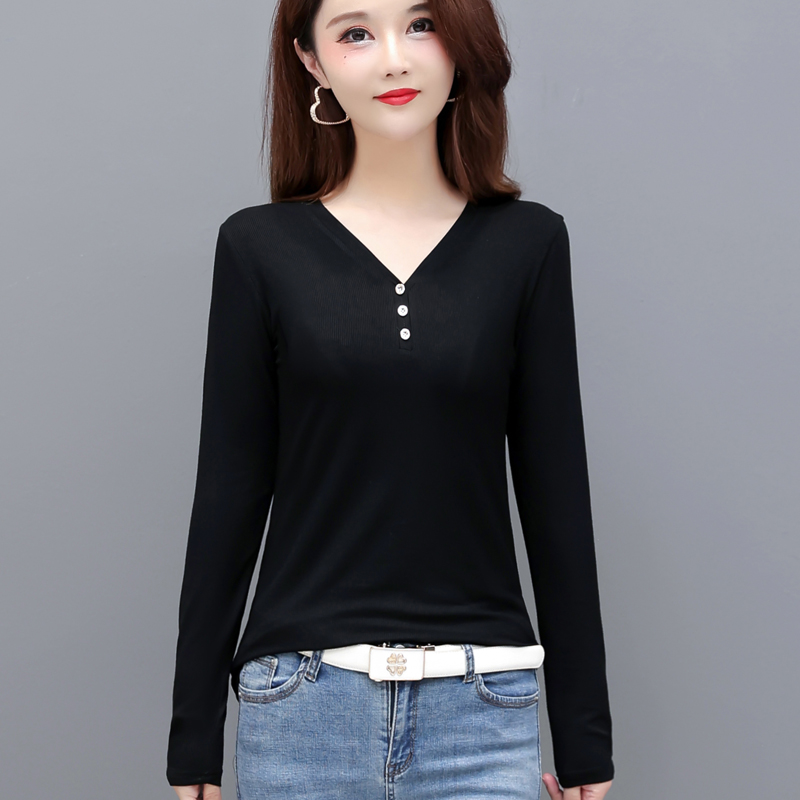 春秋季莫代尔长袖t恤女装宽松大码秋天打底衫宽松洋气黑色V领上衣