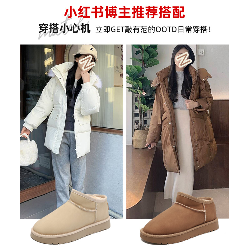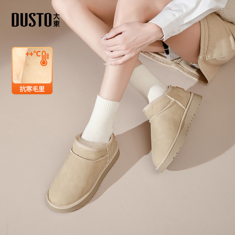 大东雪地靴女鞋2025冬季新款时尚休闲简约套脚低跟平底圆头D1218