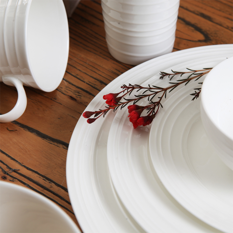 妙HOME出口北欧纯白色浮雕骨瓷餐具美式简约高档西餐盘家用套装