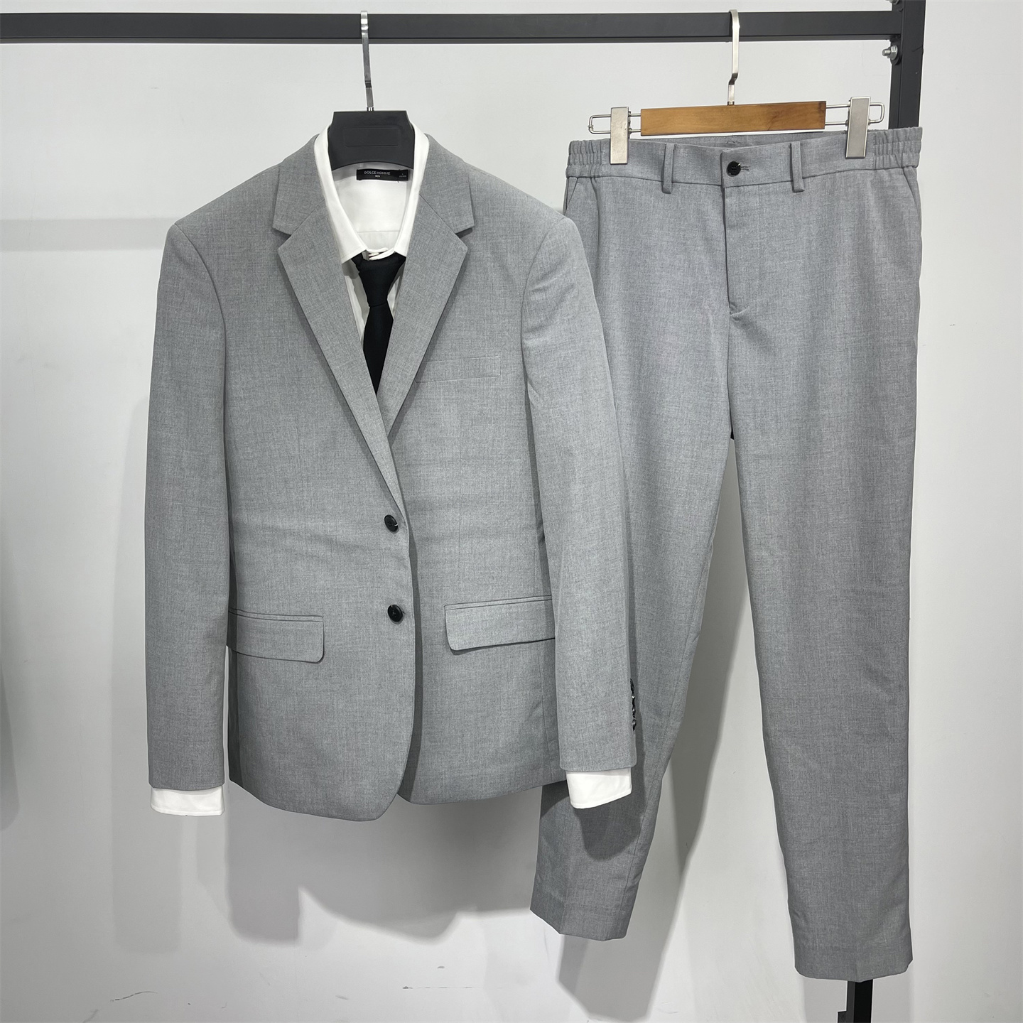 轻奢系男士休闲小西装 秋新款修身双扣小西服纯灰色单西 可配套西