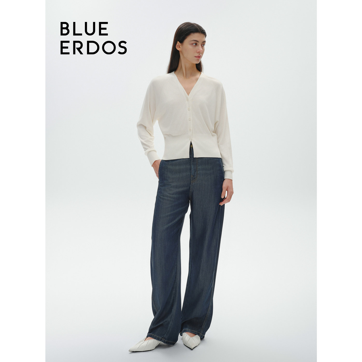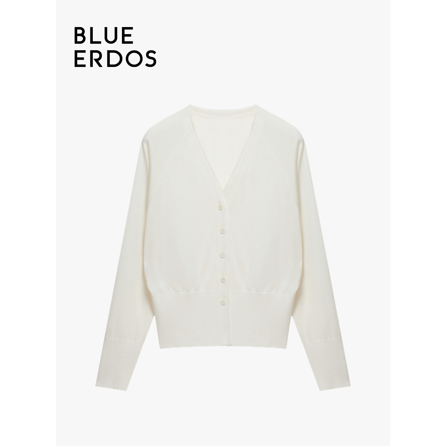 BLUE ERDOS冬季桑蚕丝混纺V领插肩袖针织开衫女