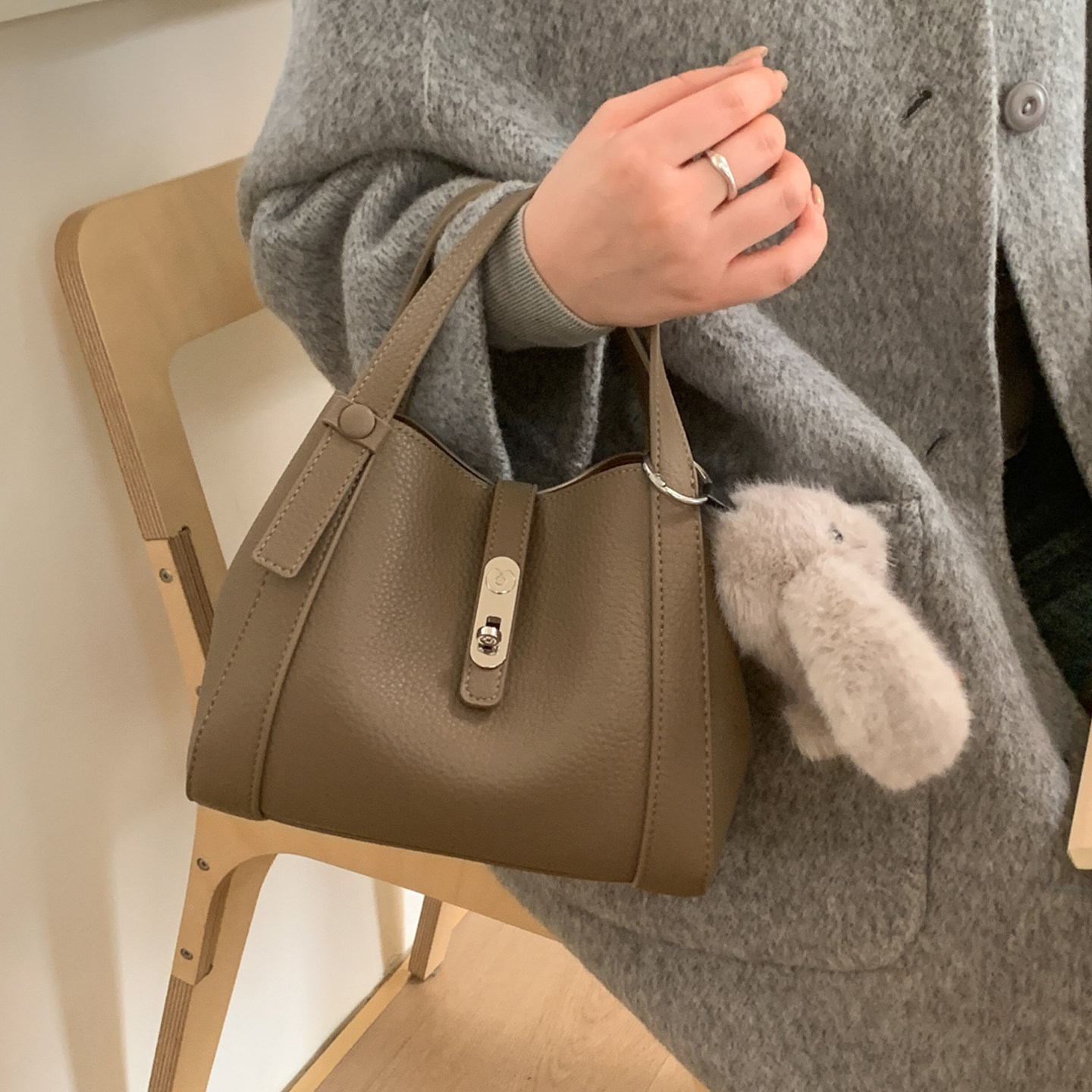 时尚软皮小众荔枝纹菜篮子水桶包包女士2026新款手提斜挎包托特包