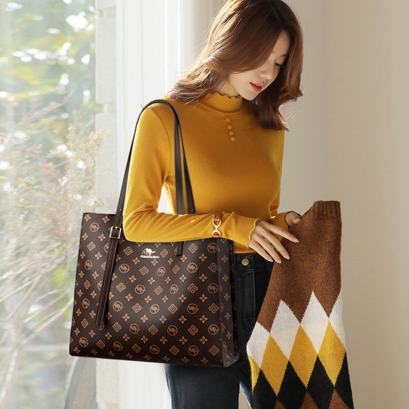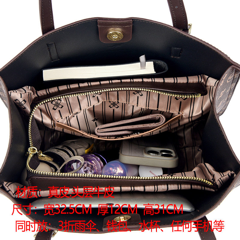 袋鼠真皮女包托特包包女士2025新款大包单肩包妈妈包女大容量百搭