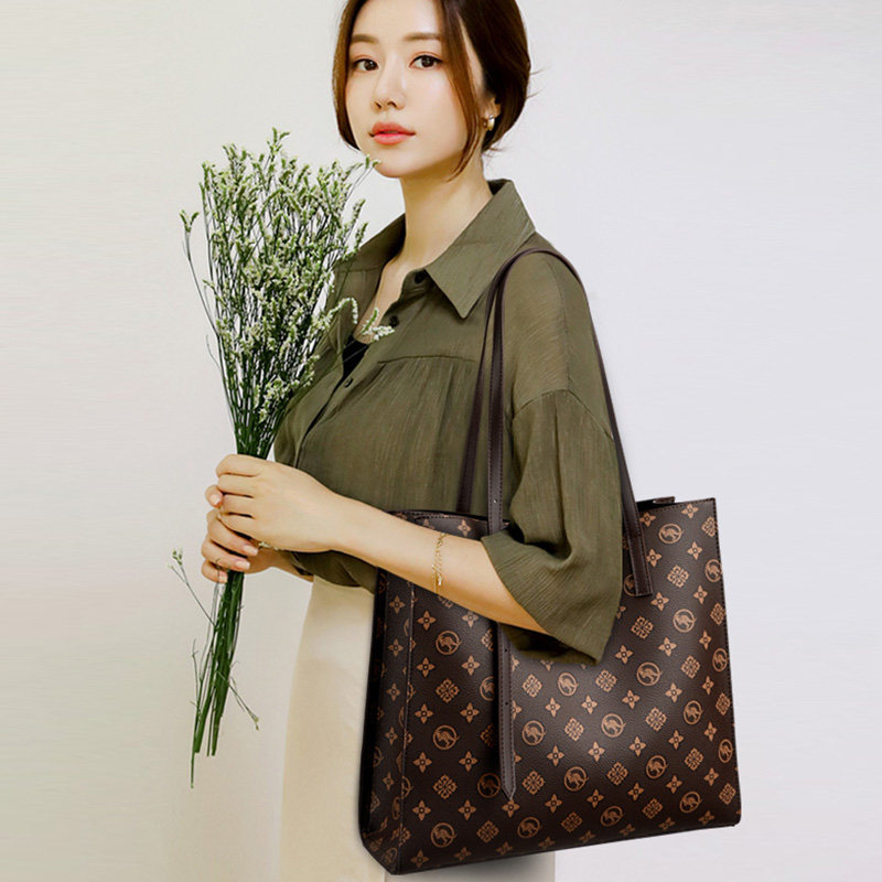 袋鼠真皮女包托特包新款女大容量