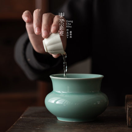 陶瓷茶洗原矿肥釉青瓷水盂茶叶废水桶小号茶渣缸茶道配件收纳杯洗