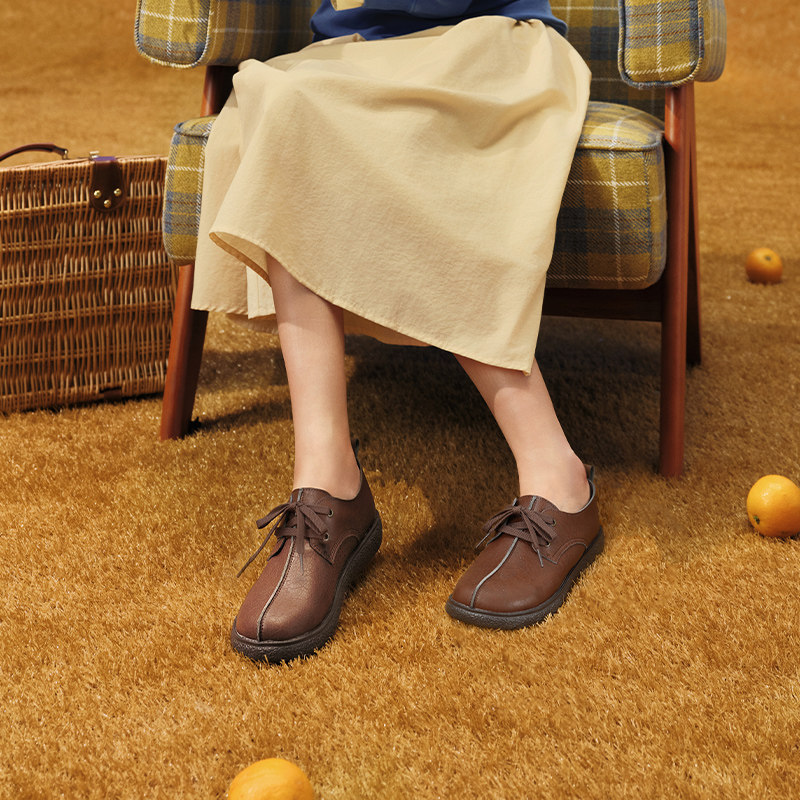 Pansy2025年秋季新款日本女鞋复古加宽免系带百搭轻便日系休闲鞋