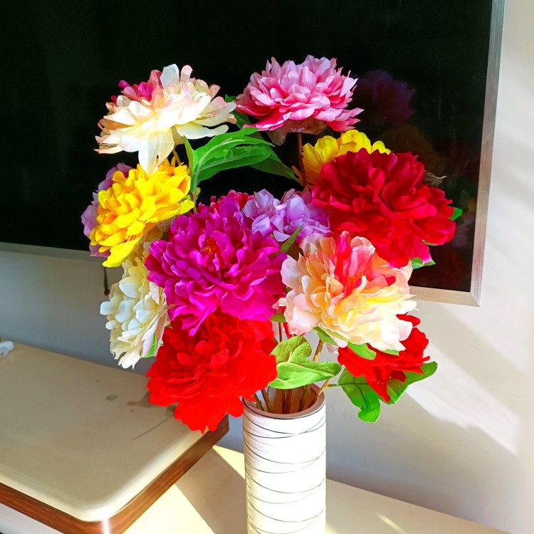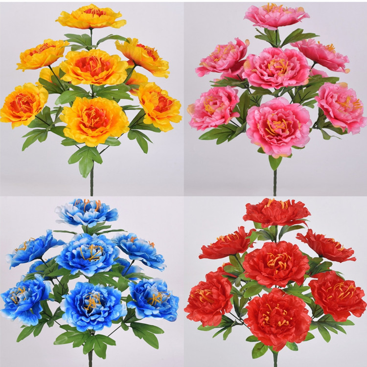 包邮仿真8头9头富贵牡丹绢花干花假花家居客厅落地装饰摆放塑料花