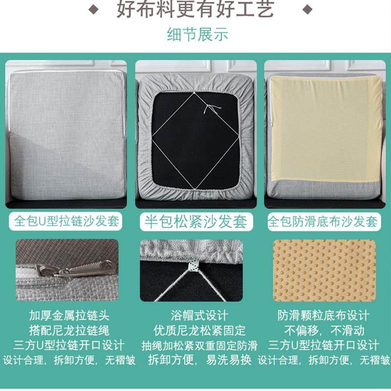 专业定制沙发套罩简约现代棉麻拉炼全包坐垫靠背套防滑沙发笠定做