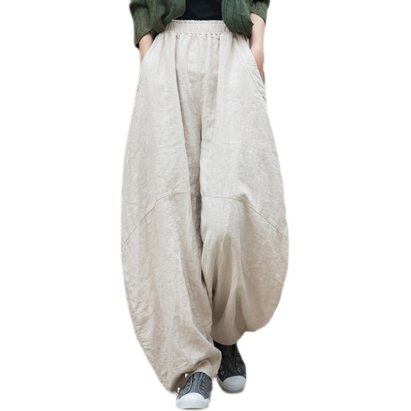 棉麻裤子女秋2025新款炒色做旧休闲裤宽松长裤打坐禅修太极灯笼裤