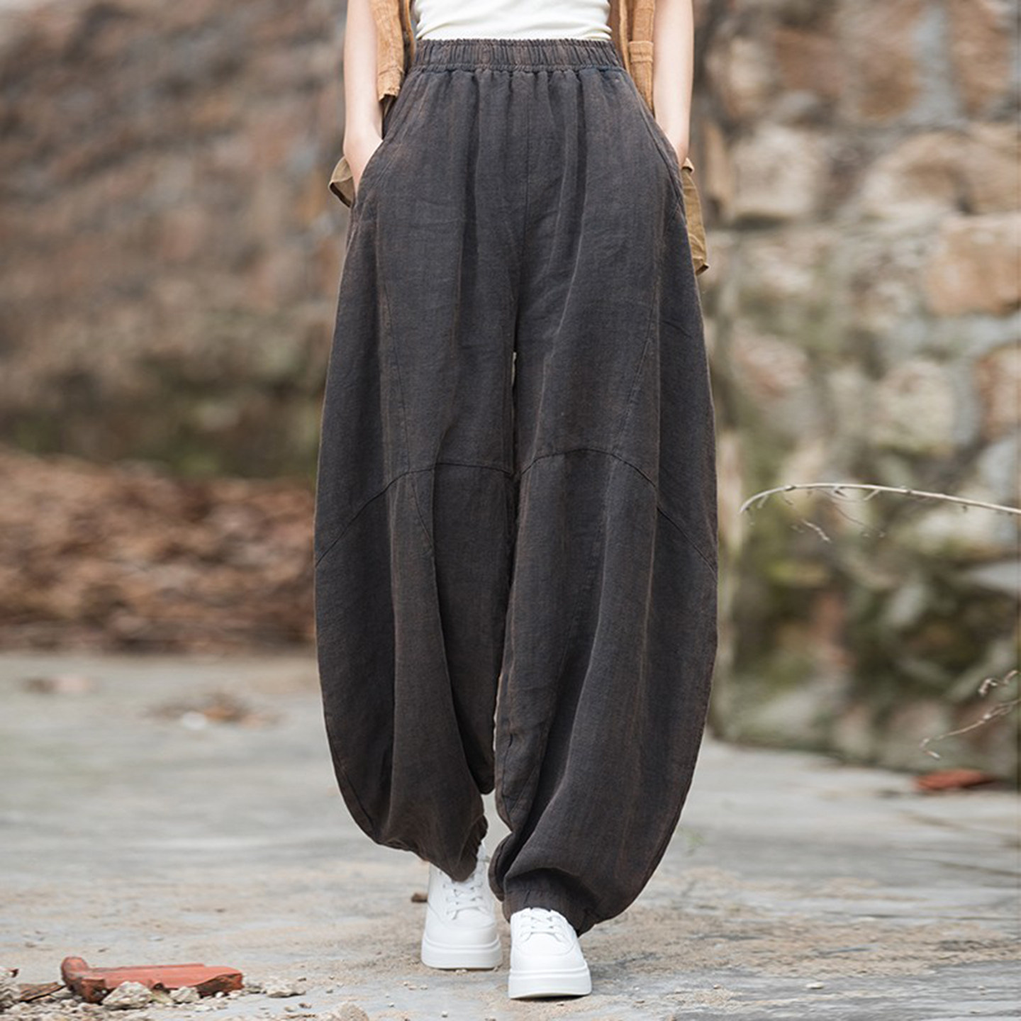 棉麻宽松灯笼裤炒色做旧长裤子