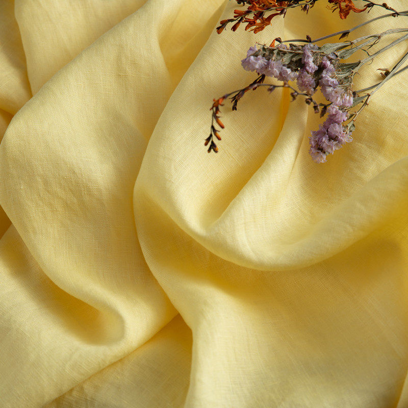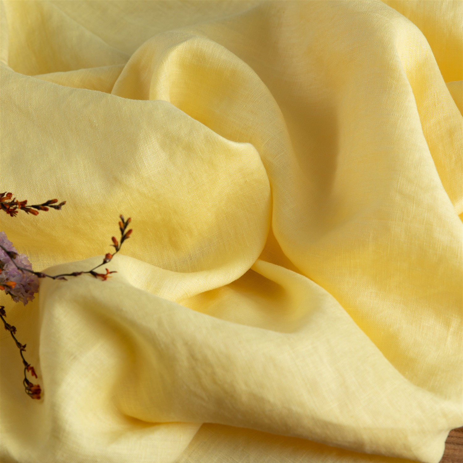 【鹅黄】文艺浪漫亚麻布料石磨砂洗麻料袍子连衣裙裤子衬衫外套