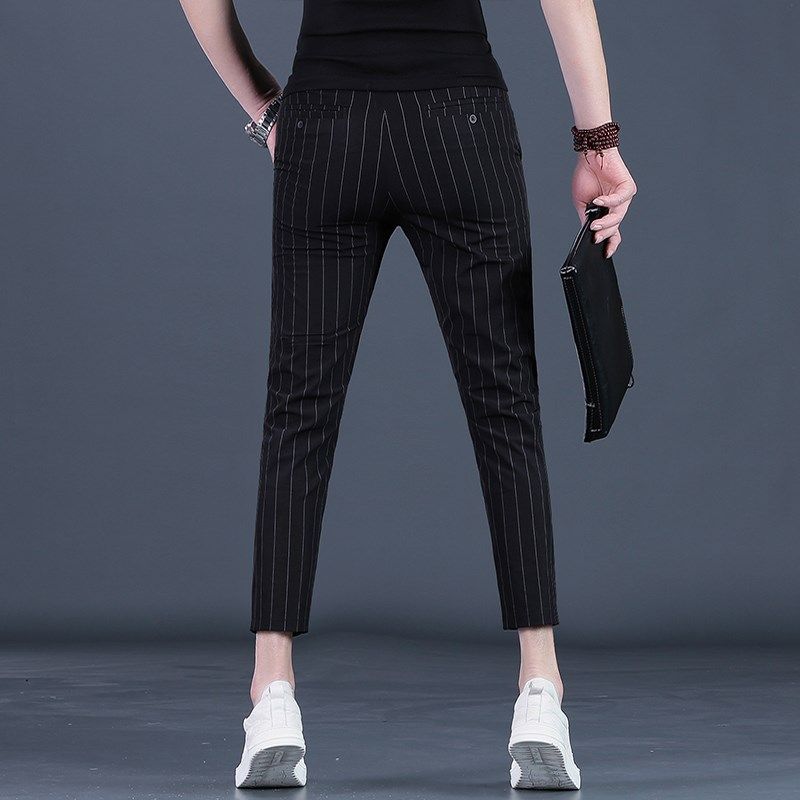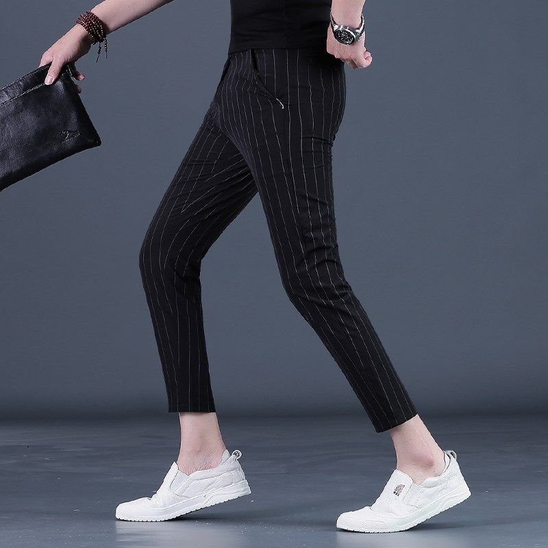 夏季裤子男九分裤男士休闲裤潮流修身小脚条纹9分薄款黑色男裤25