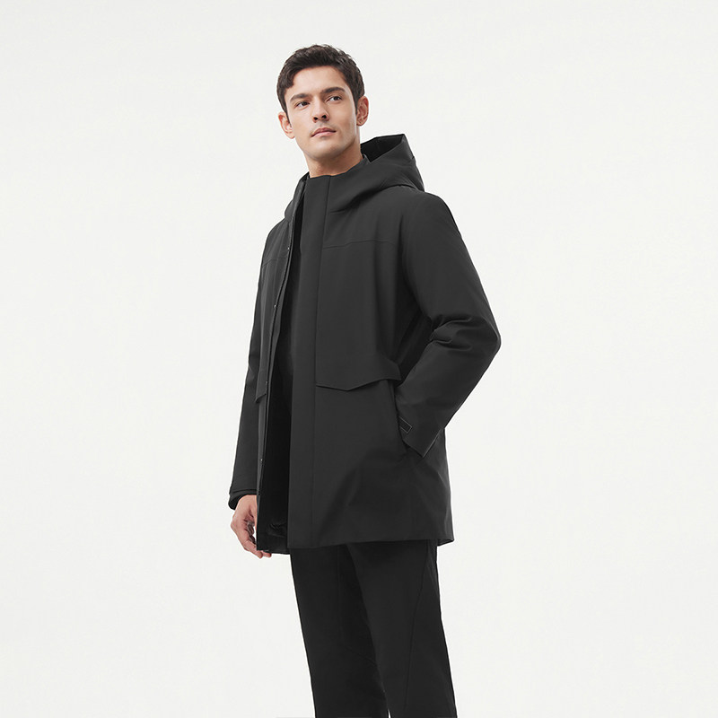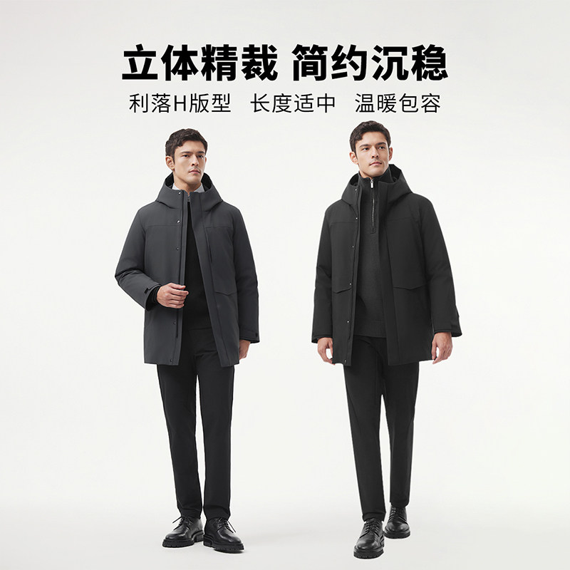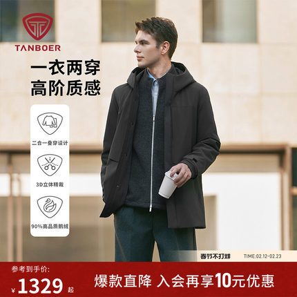 坦博尔冬季鹅绒羽绒服男中长款商务加厚保暖高品质可脱卸内胆外套