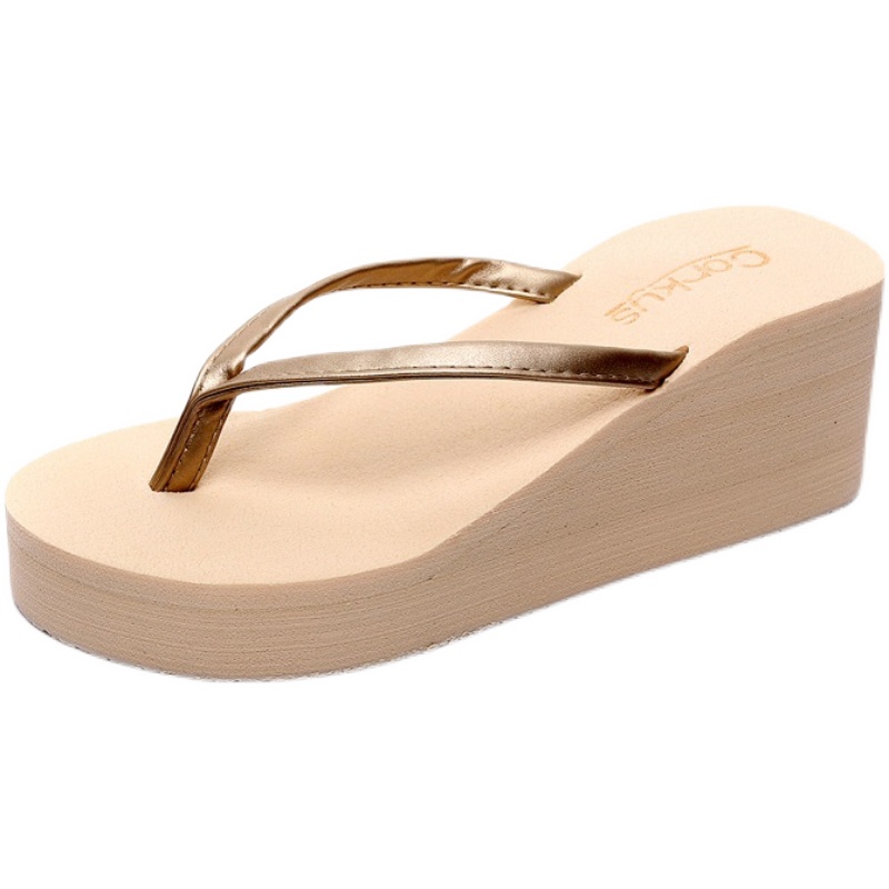 2021新款夏季人字拖女沙滩鞋高坡跟凉拖时尚外穿松糕厚底增高拖鞋